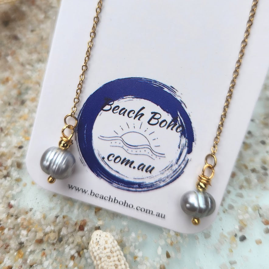 14 ct Plated Hyper Allergenic Thread Baroque Silver Grey Pearl Earrings (Stud Back or Thread thru to your choice of length) Each Pair made from