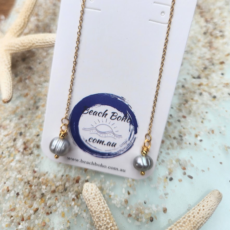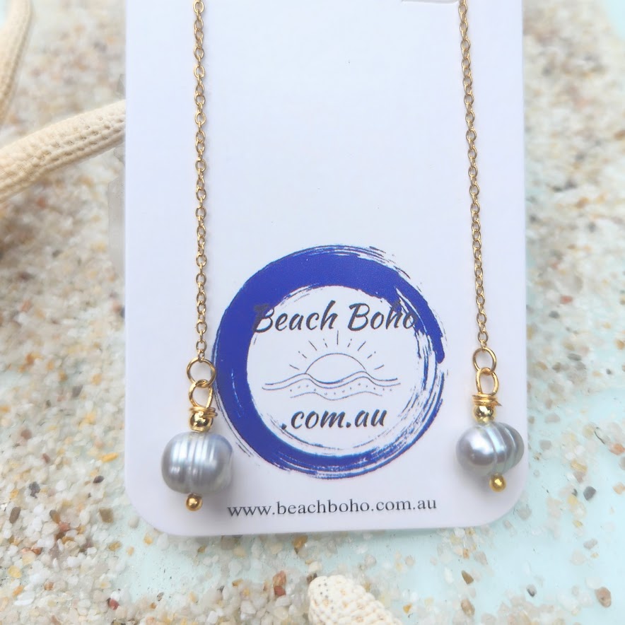 SILVER GREY PEARL GOLD THREAD EARRINGS