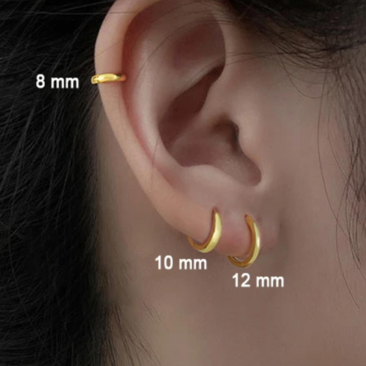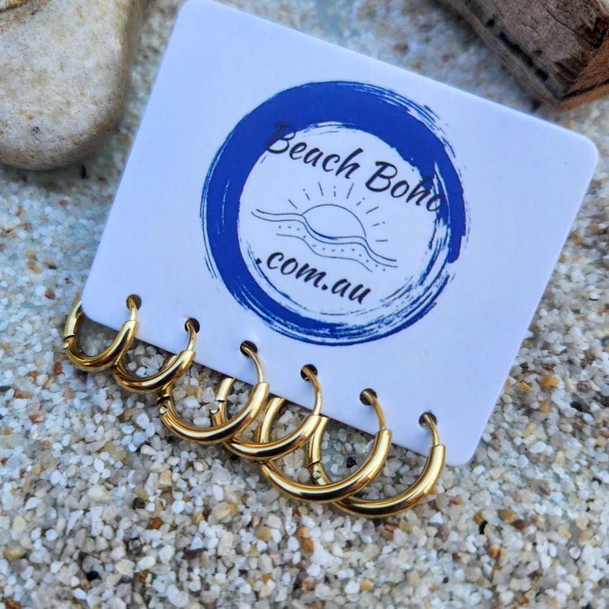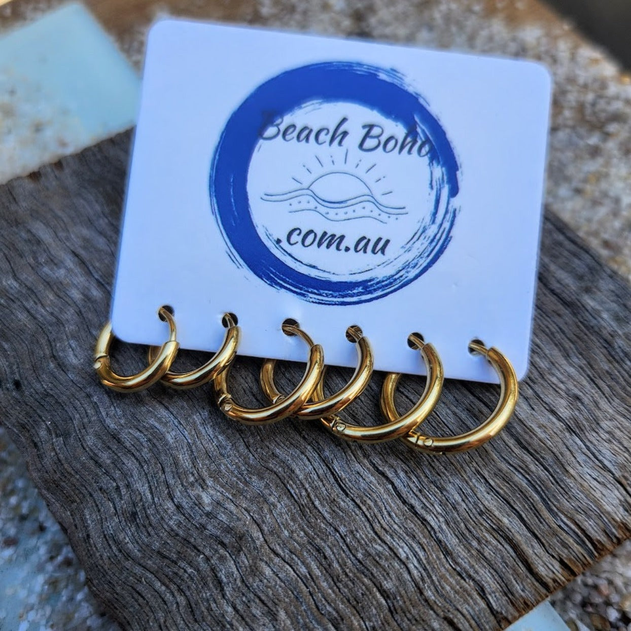 Set of 3 18k Gold Plated or Silver Huggie Hoop Earrings incredibly comfortable & made with Titanium Steel Tarnish Resistant Jewellery 8mm 10mm 12mm round. Perfect to wear all the time!