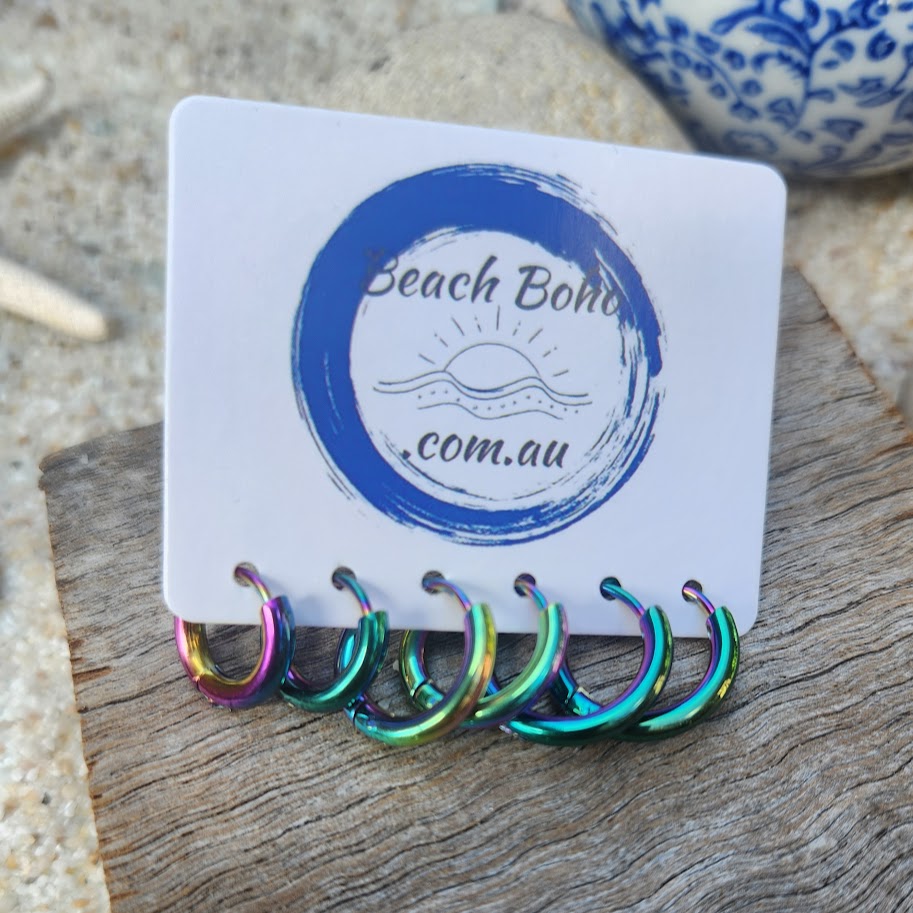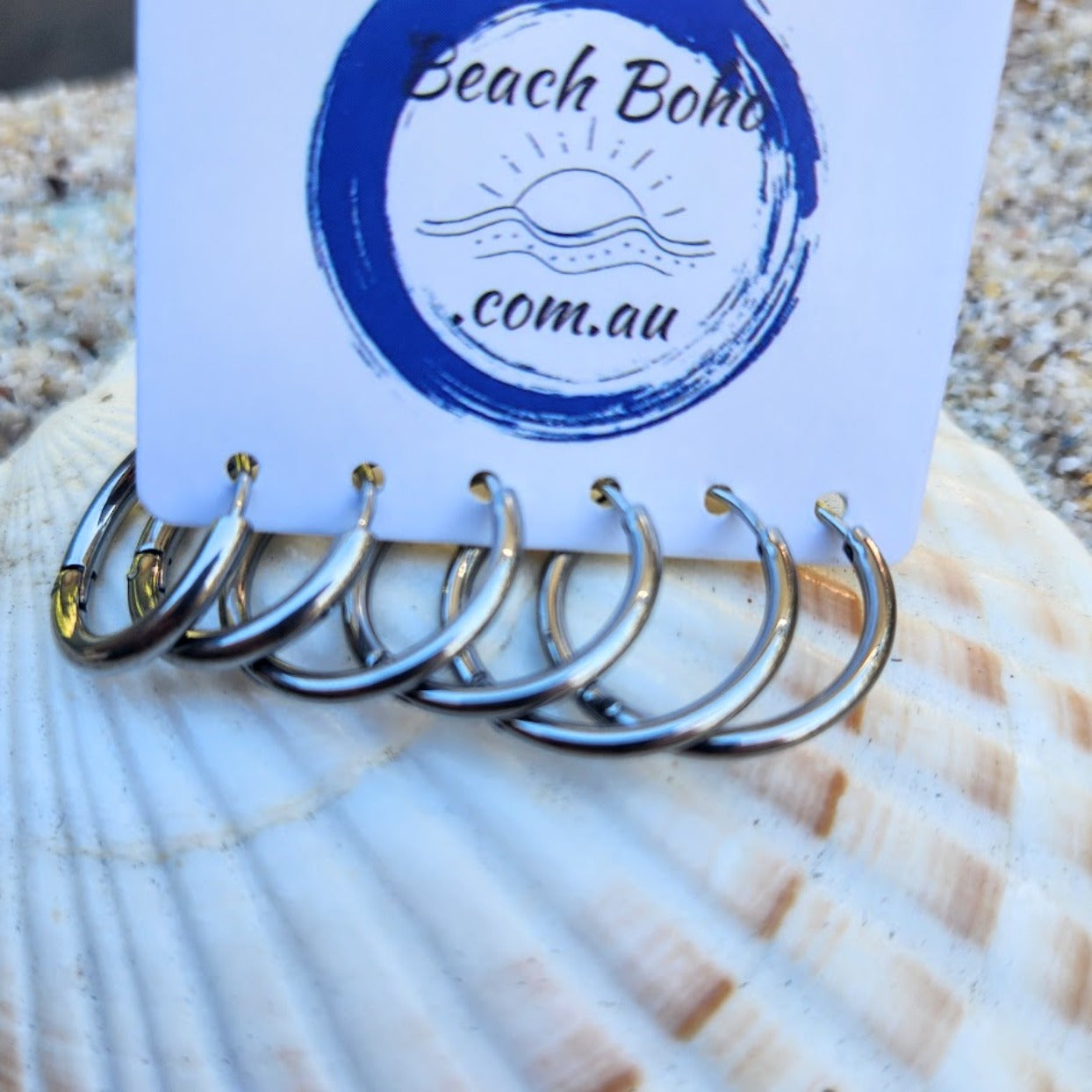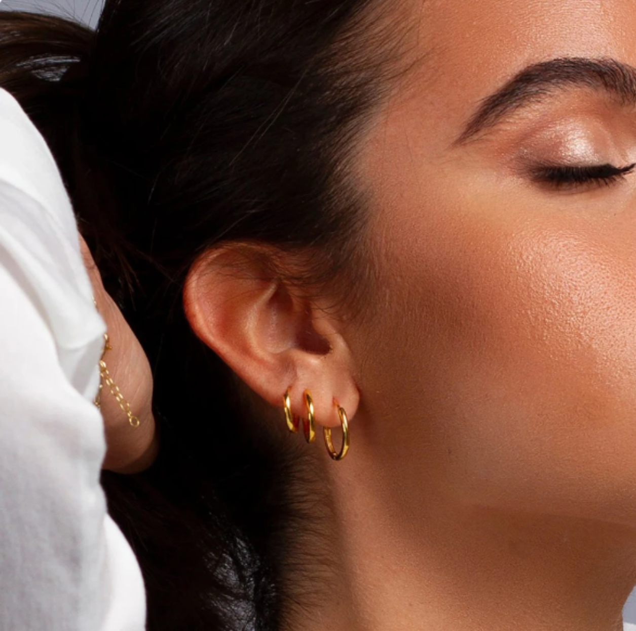 Set of 3 18k Gold Plated or Silver Huggie Hoop Earrings incredibly comfortable & made with Titanium Steel Tarnish Resistant Jewellery 8mm 10mm 12mm round. Perfect to wear all the time!