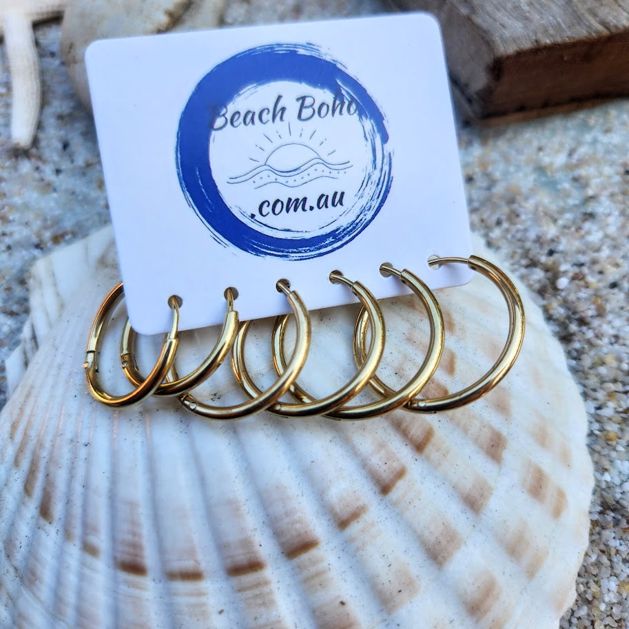 HUGGIES SETS OF 3 - 2MM GOLD OR SILVER WATERPROOF HUGGIE SET OF EARRINGS 14/16/18 mm