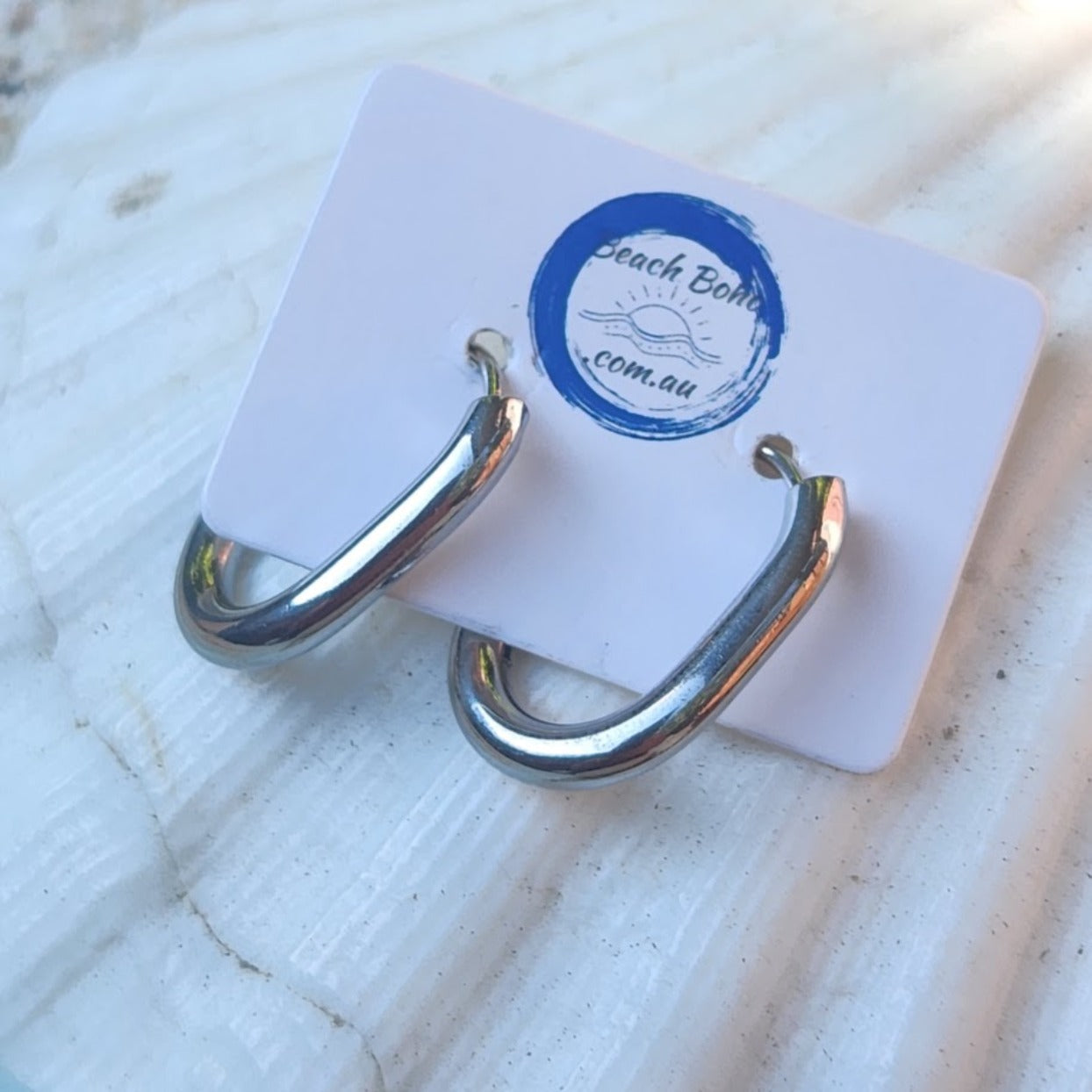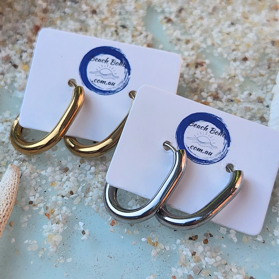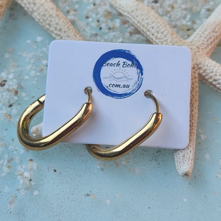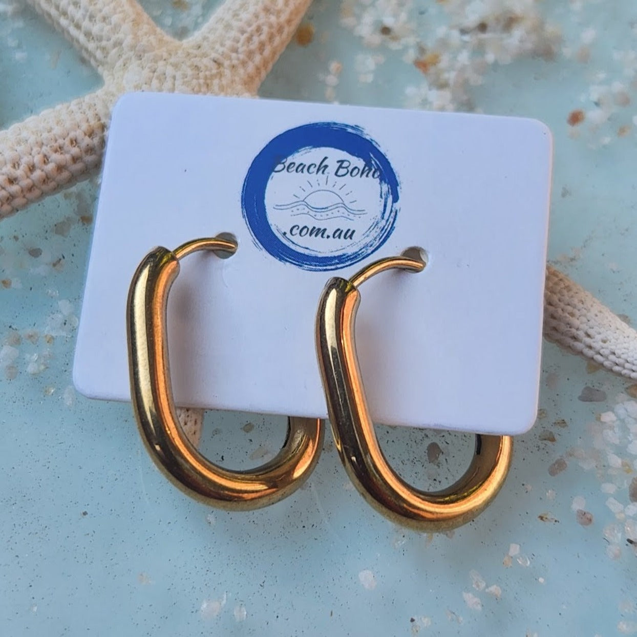 18k Gold Plated & Silver Oblong Shaped Huggie Hoop Earrings incredibly comfortable & made with Titanium Steel Tarnish Resistant Jewellery 19 mm by 22 mm.