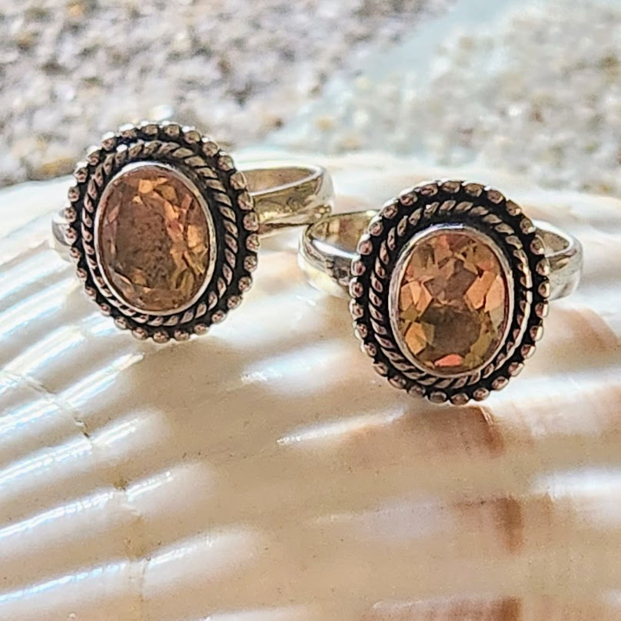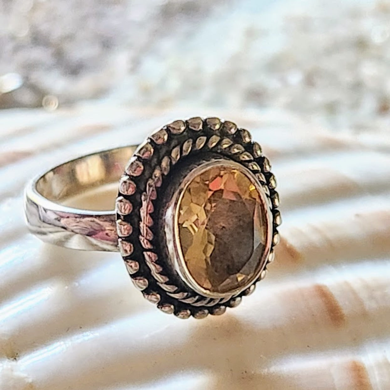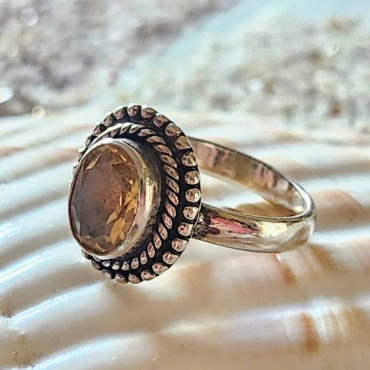 OVAL - CITRINE BEADED DESIGN 925 RING
