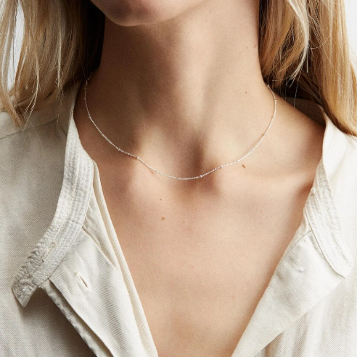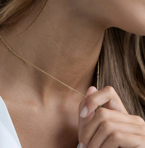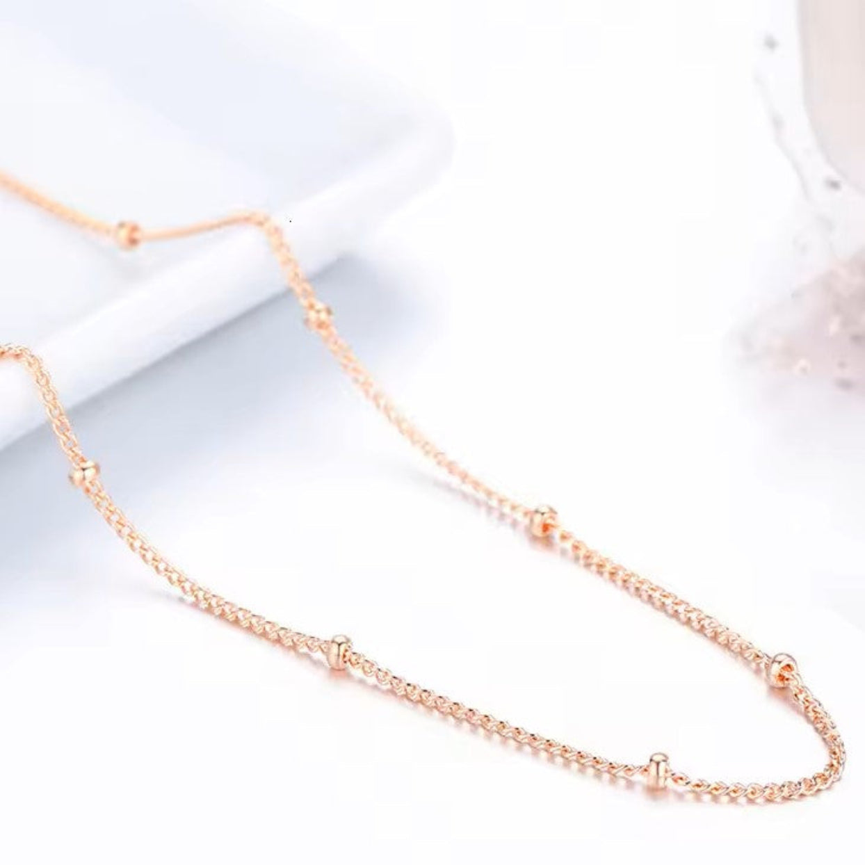 Saturn Beaded 18 ct Gold Plated Rose Gold or Silver stainless steel Chain Necklace 41 cm Extension Chain & Lobster Clasp