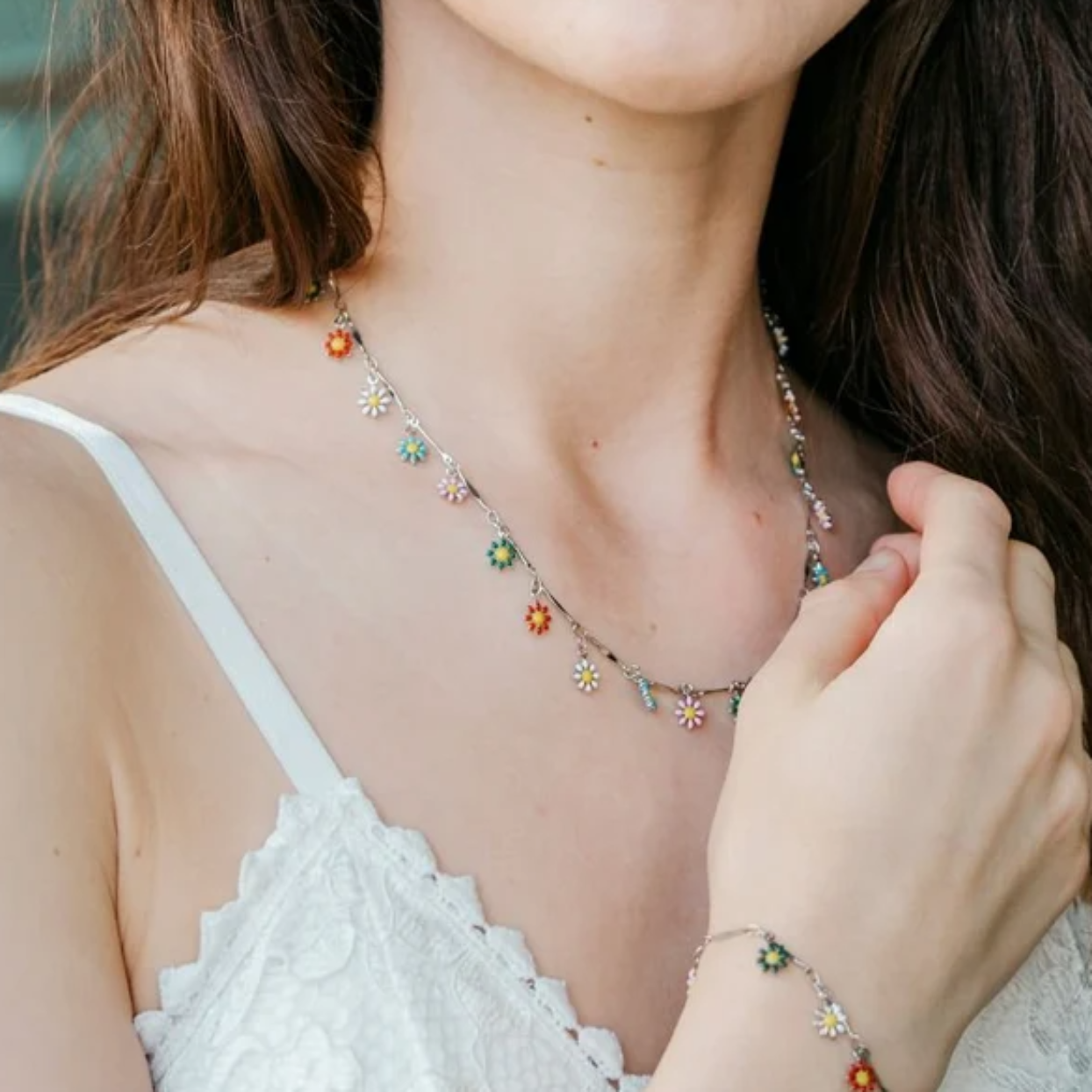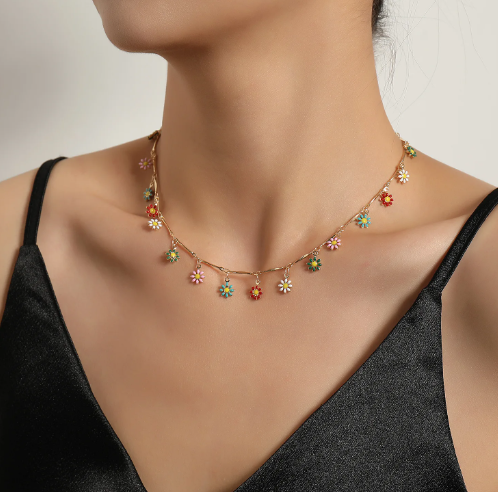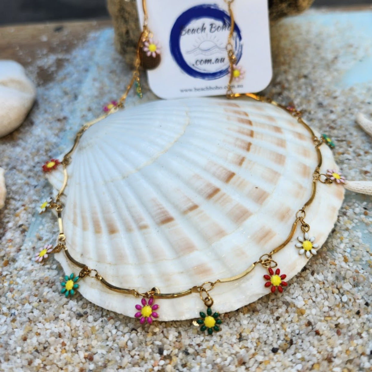 SUMMER FLOWERS - RAINBOW DAISY WATERPROOF NECKLACE