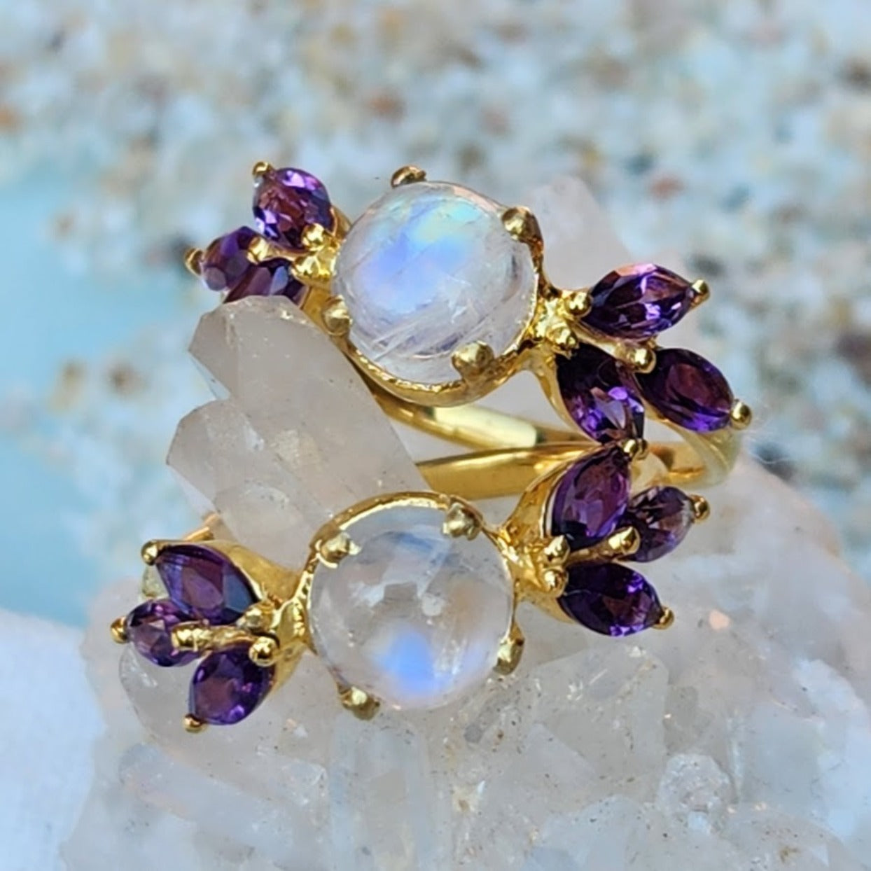 Amethyst & Peridot Leaf Vermeil Gold Rings