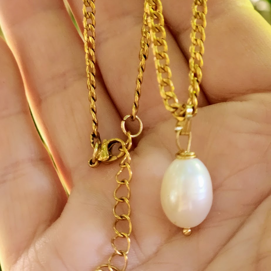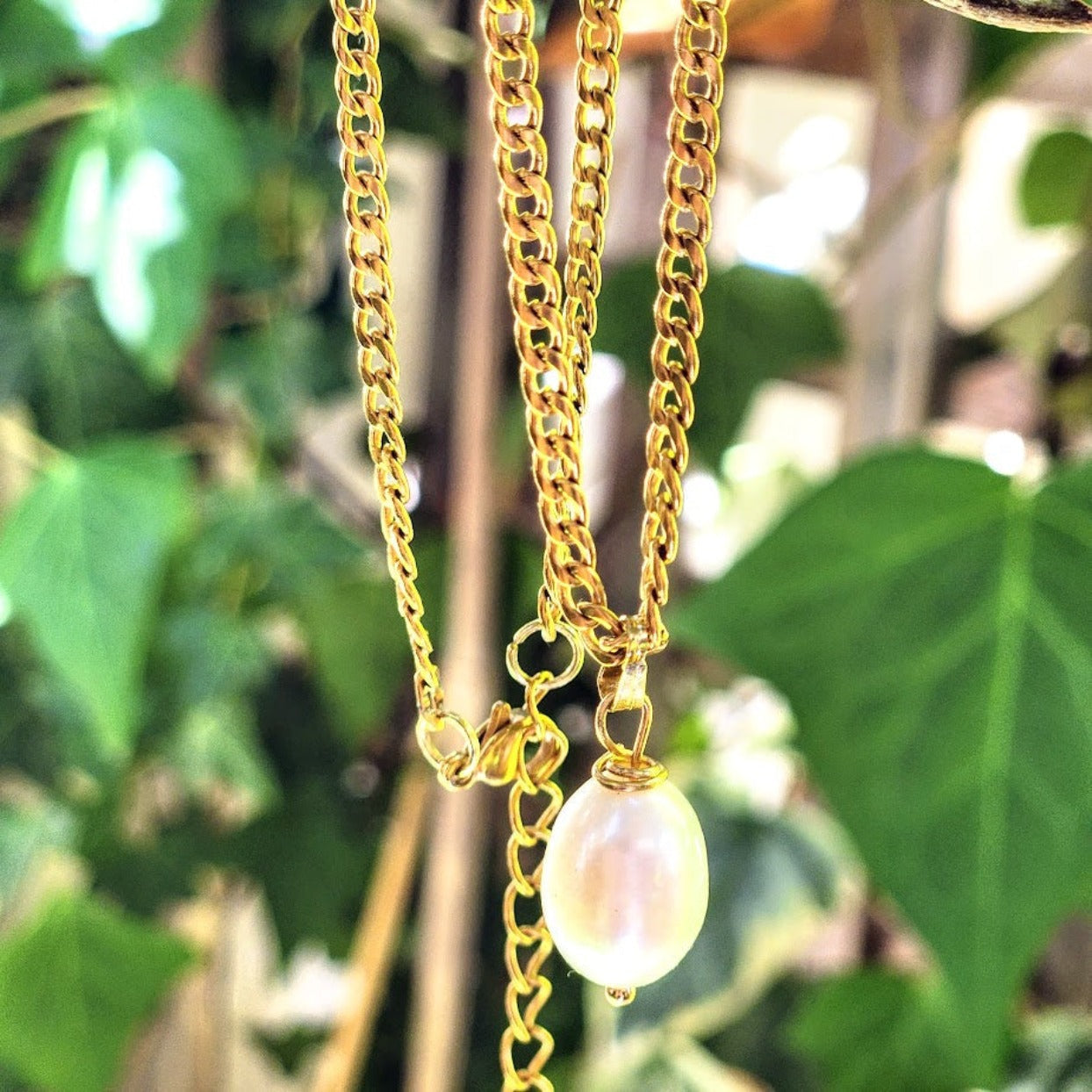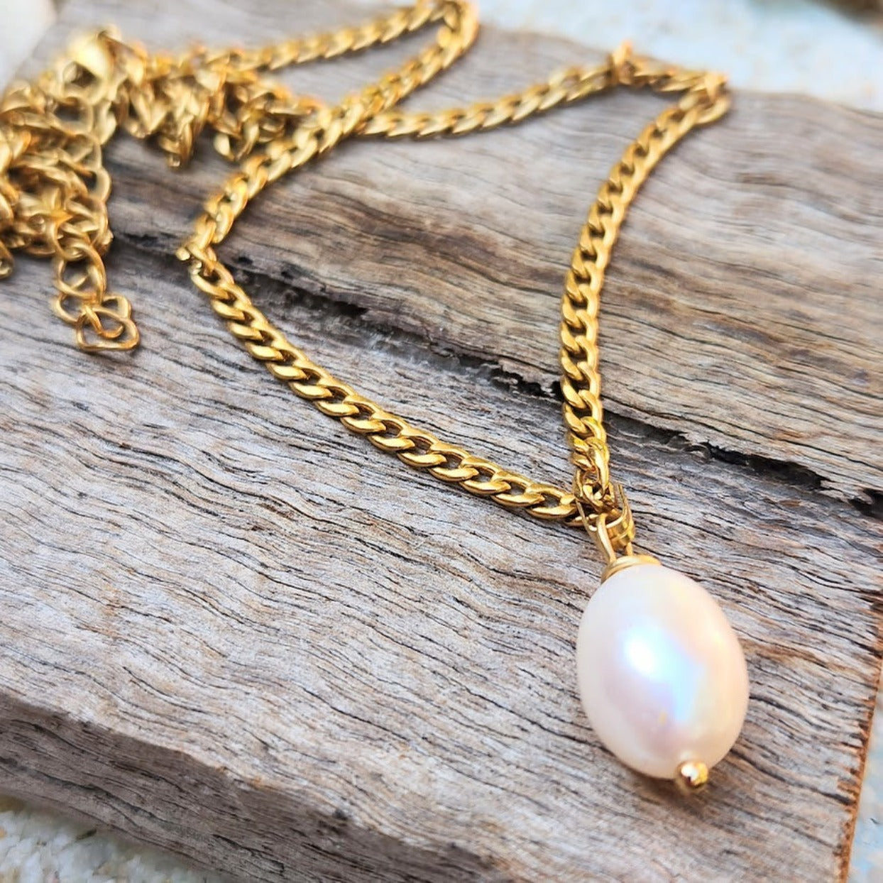 Handmade 18 ct Gold Plated Curb Rope Necklace with Baroque Pearl Charm