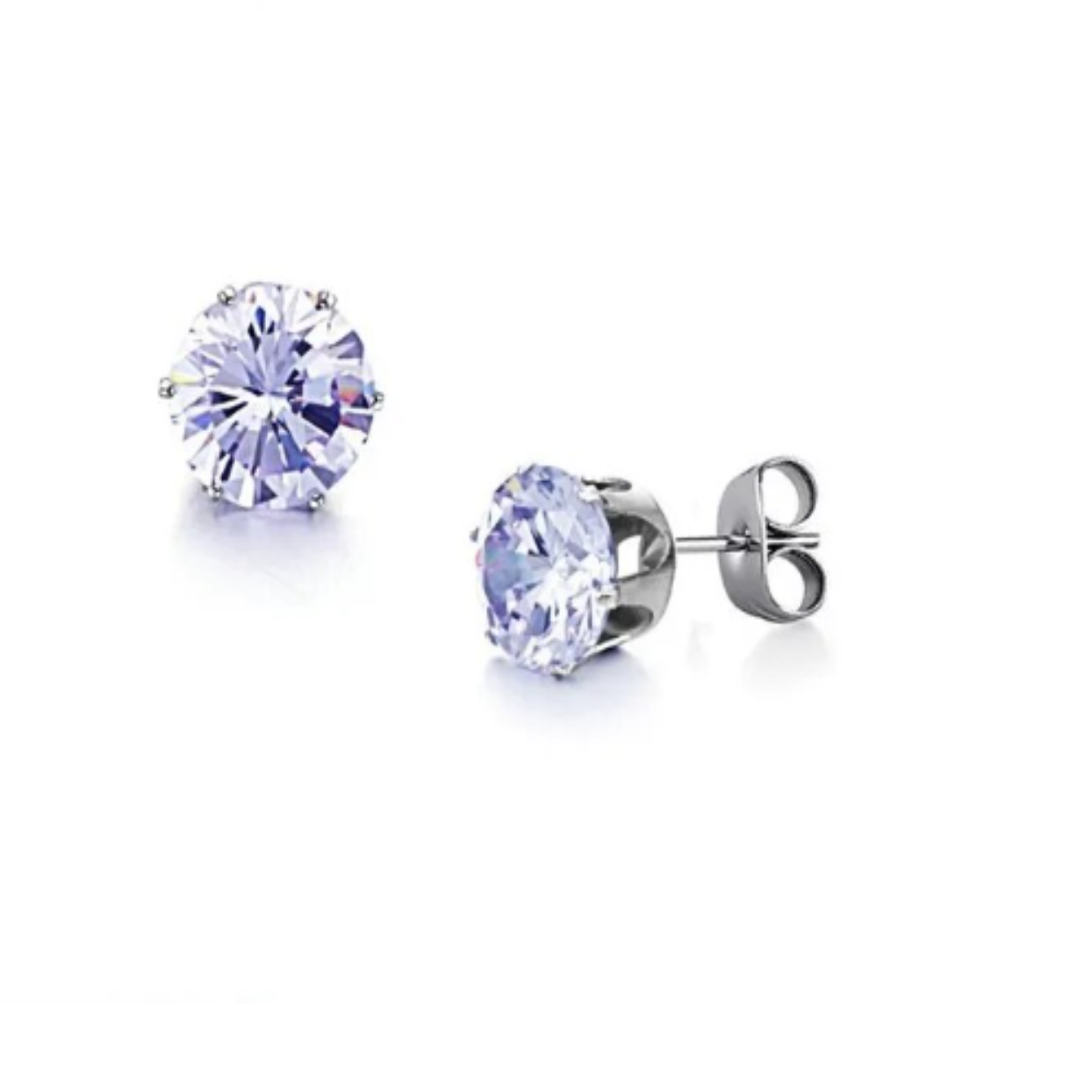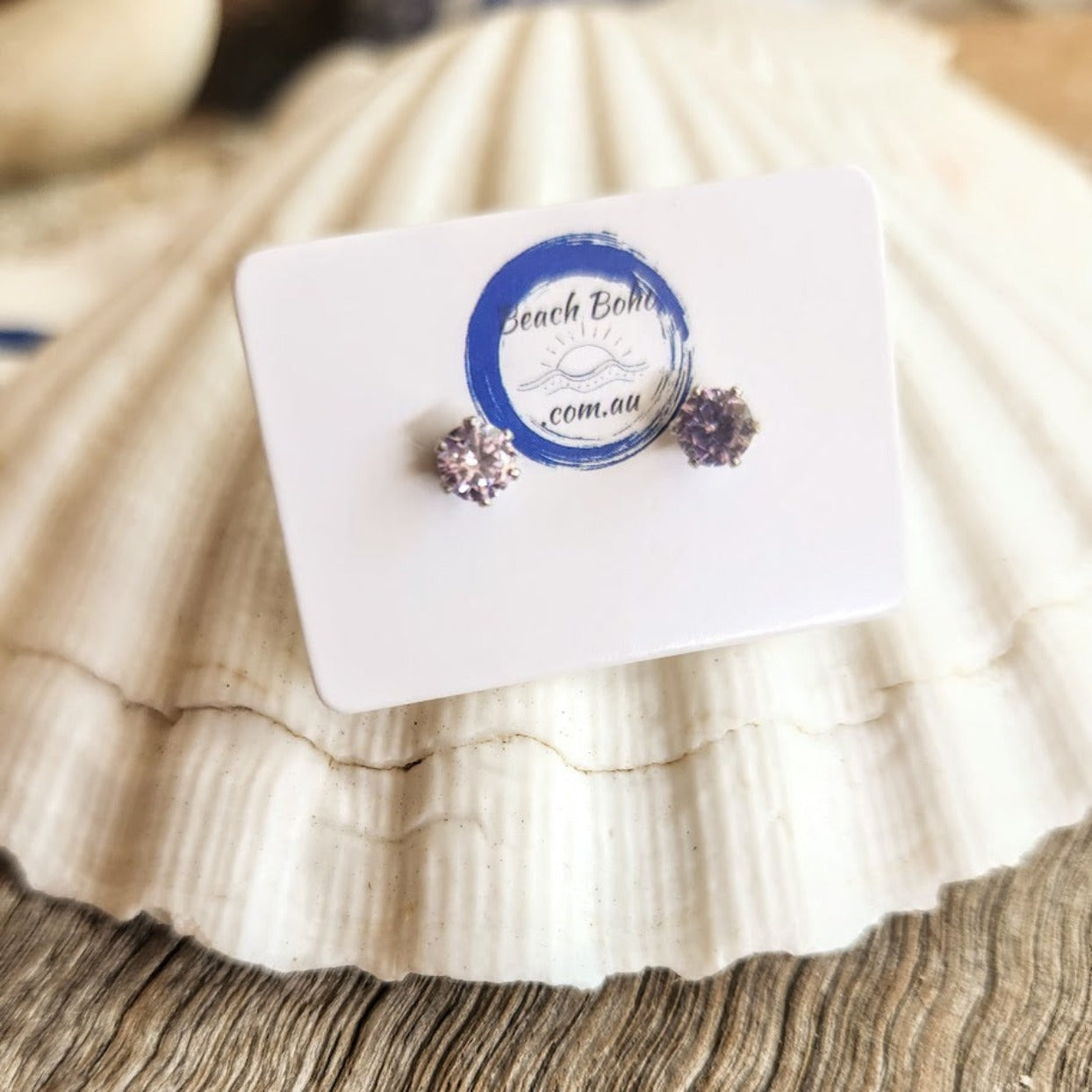 Cubic Zirconia Light Amethyst - Earrings made with Titanium Steel Tarnish Resistant Jewellery 4mm