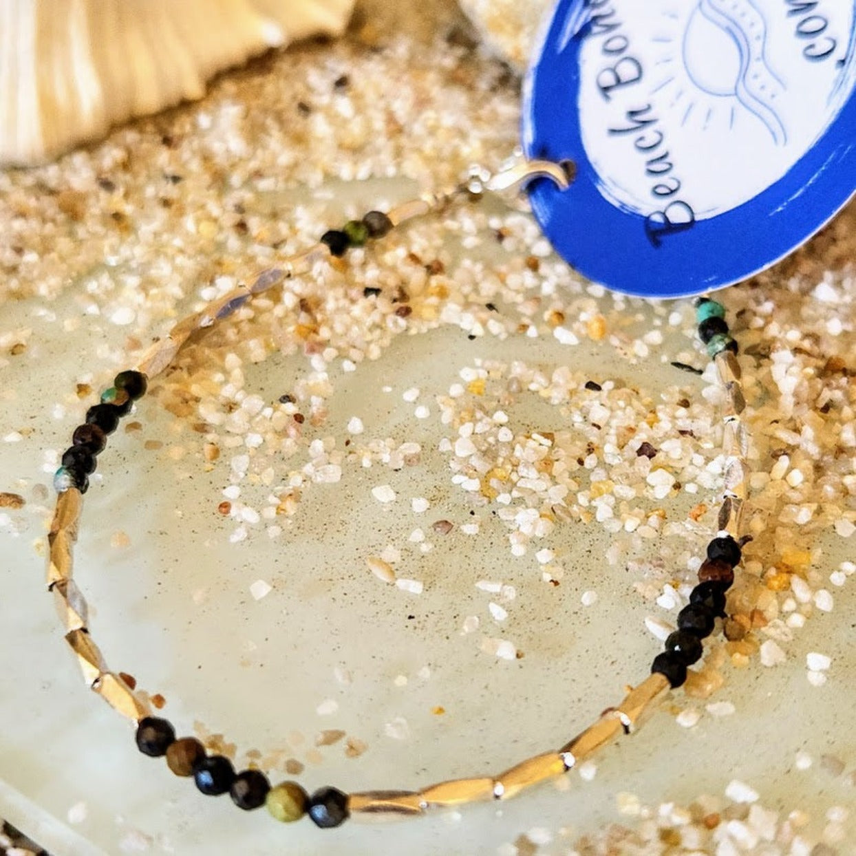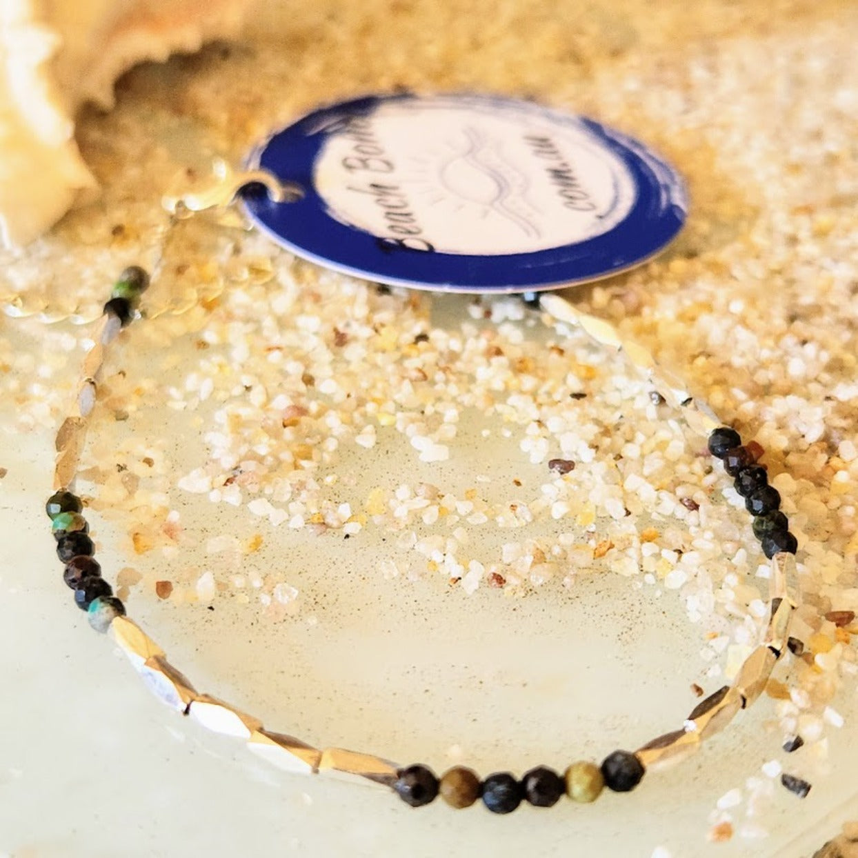 Pretty Faceted Turquoise & Faceted Hilltribe Barrel Beads / Boho Bracelet with 925 Sterling Silver Lobster Hook and Extension Chain