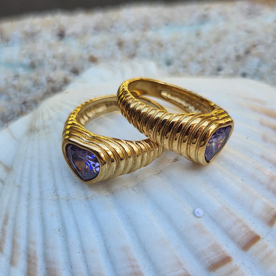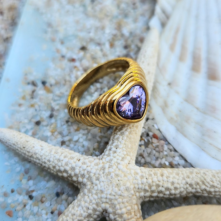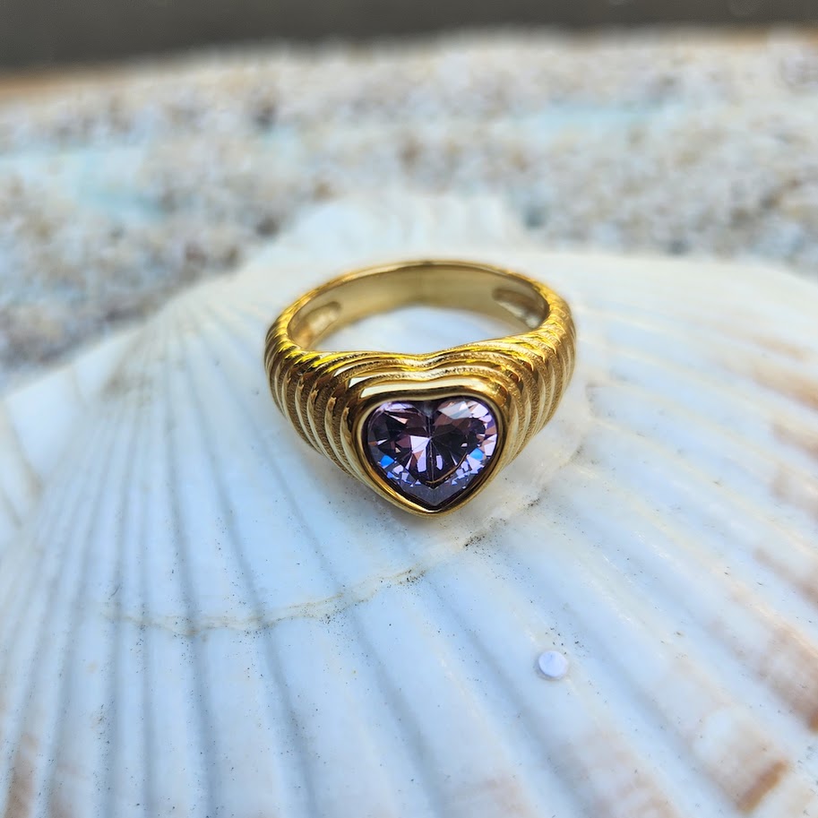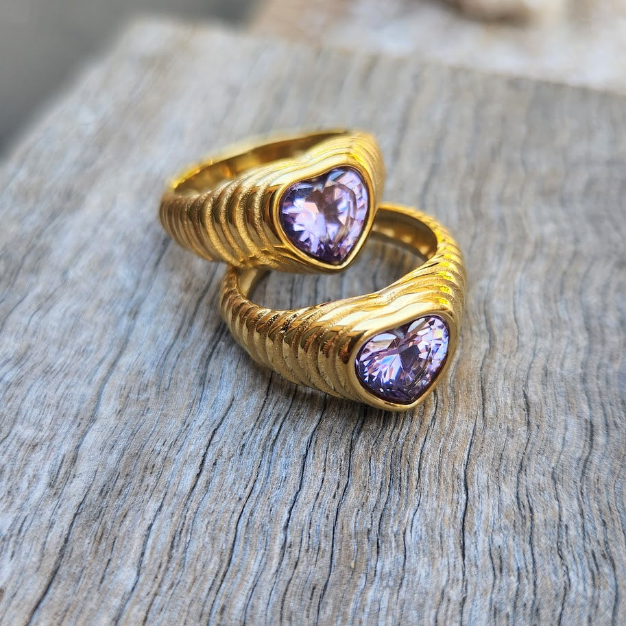 AMETHYST HEART - WATERPROOF 18K GOLD RING