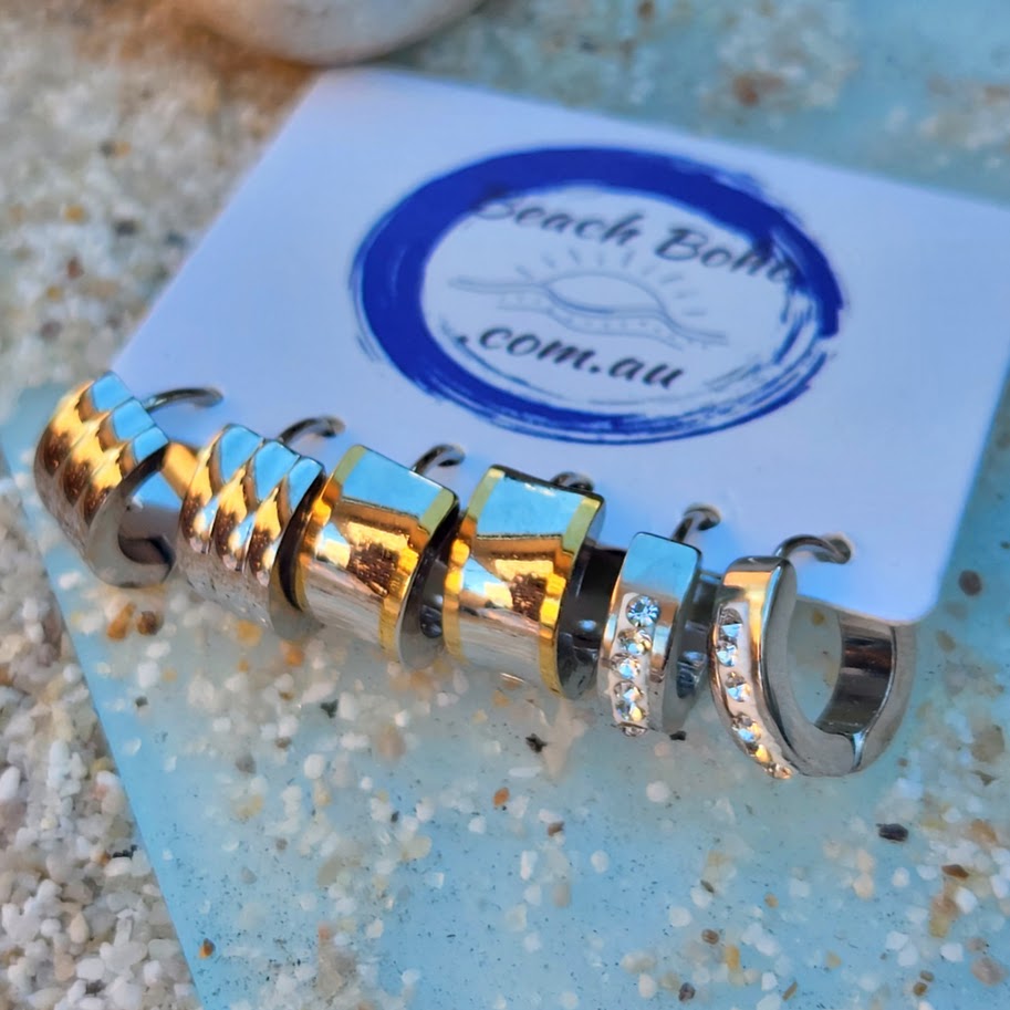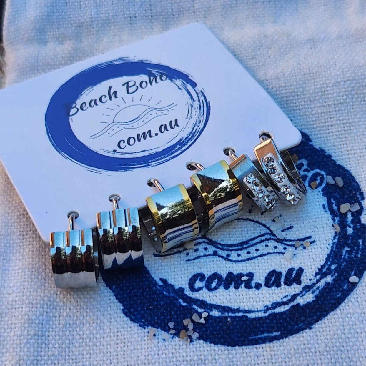 ZANZIA - HUGGIE SET SILVER - WATERPROOF HUGGIE HOOP EARRINGS