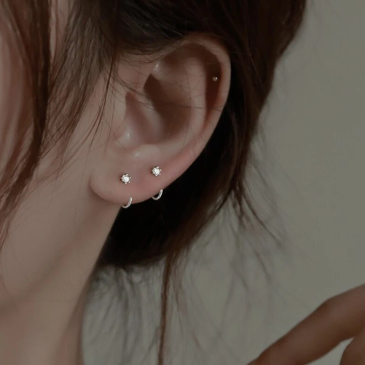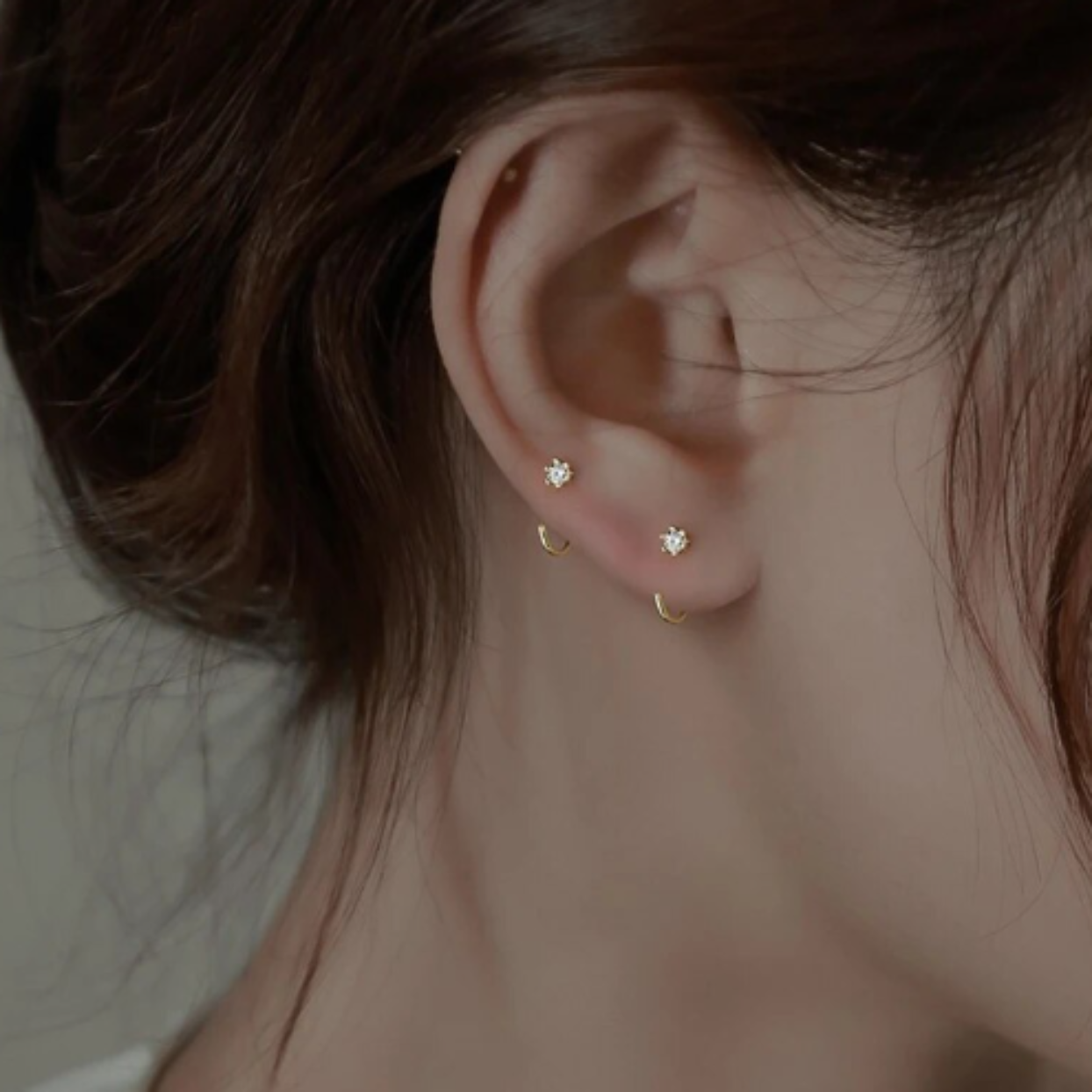 SET OF TWO - WATERPROOF CUBIC ZIRCONIA BACK SILVER & GOLD PIERCINGS⁷