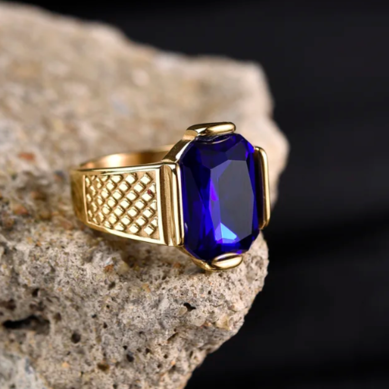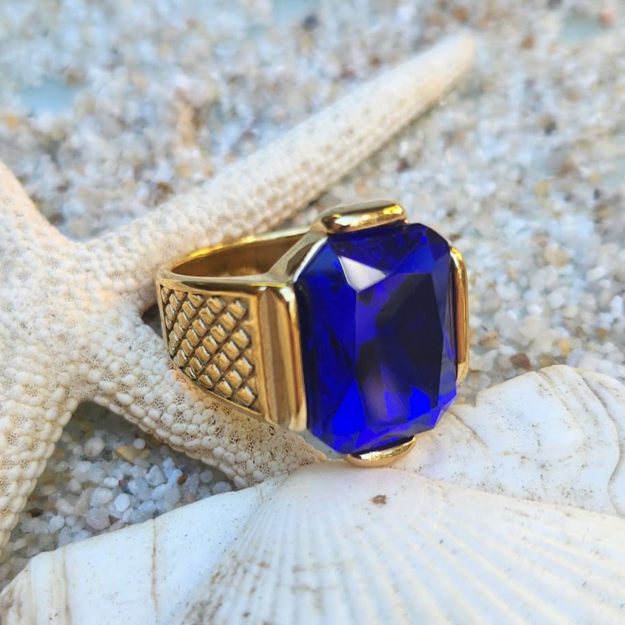 NOIR EN BLU - WATERPROOF MEN'S ONYX OR SAPPHIRE 18K GOLD RING