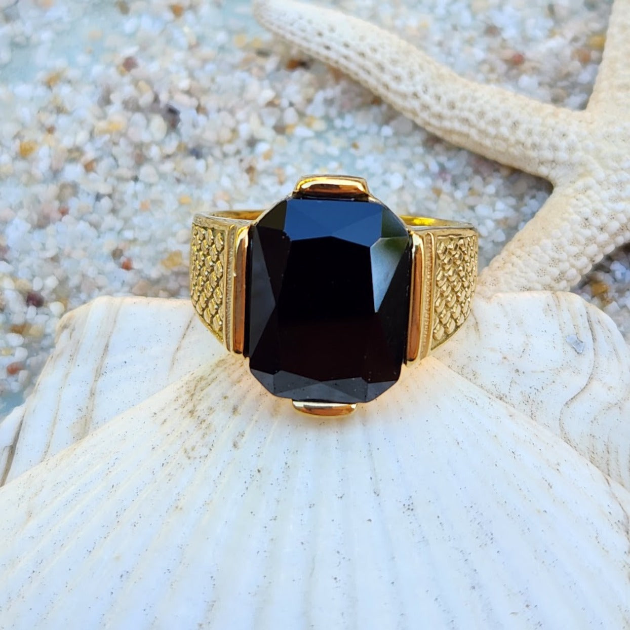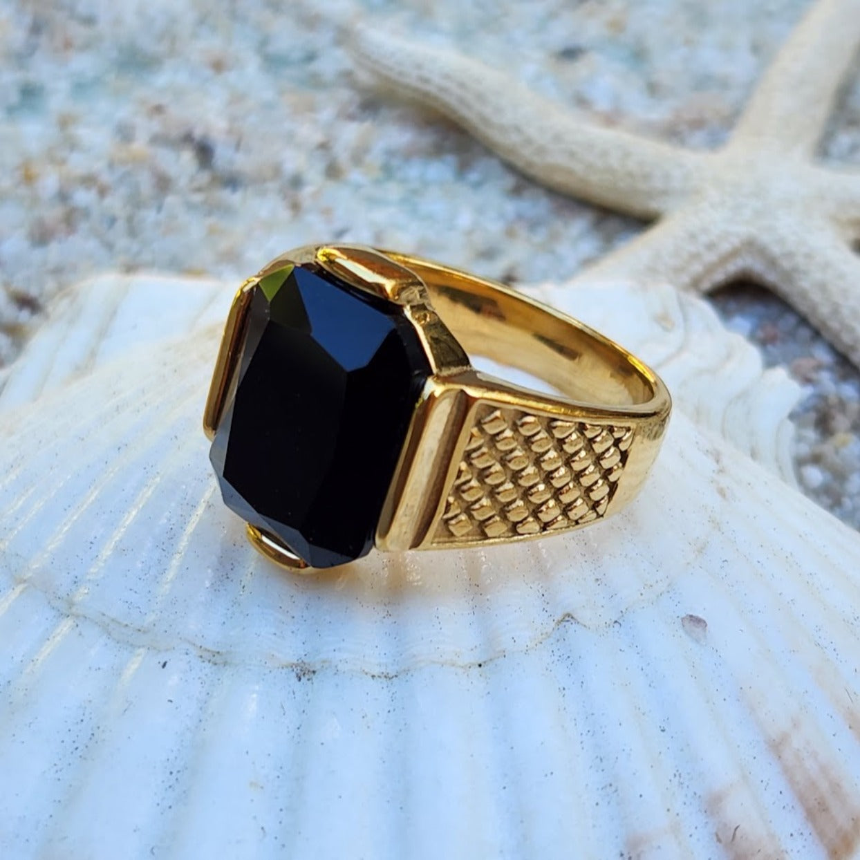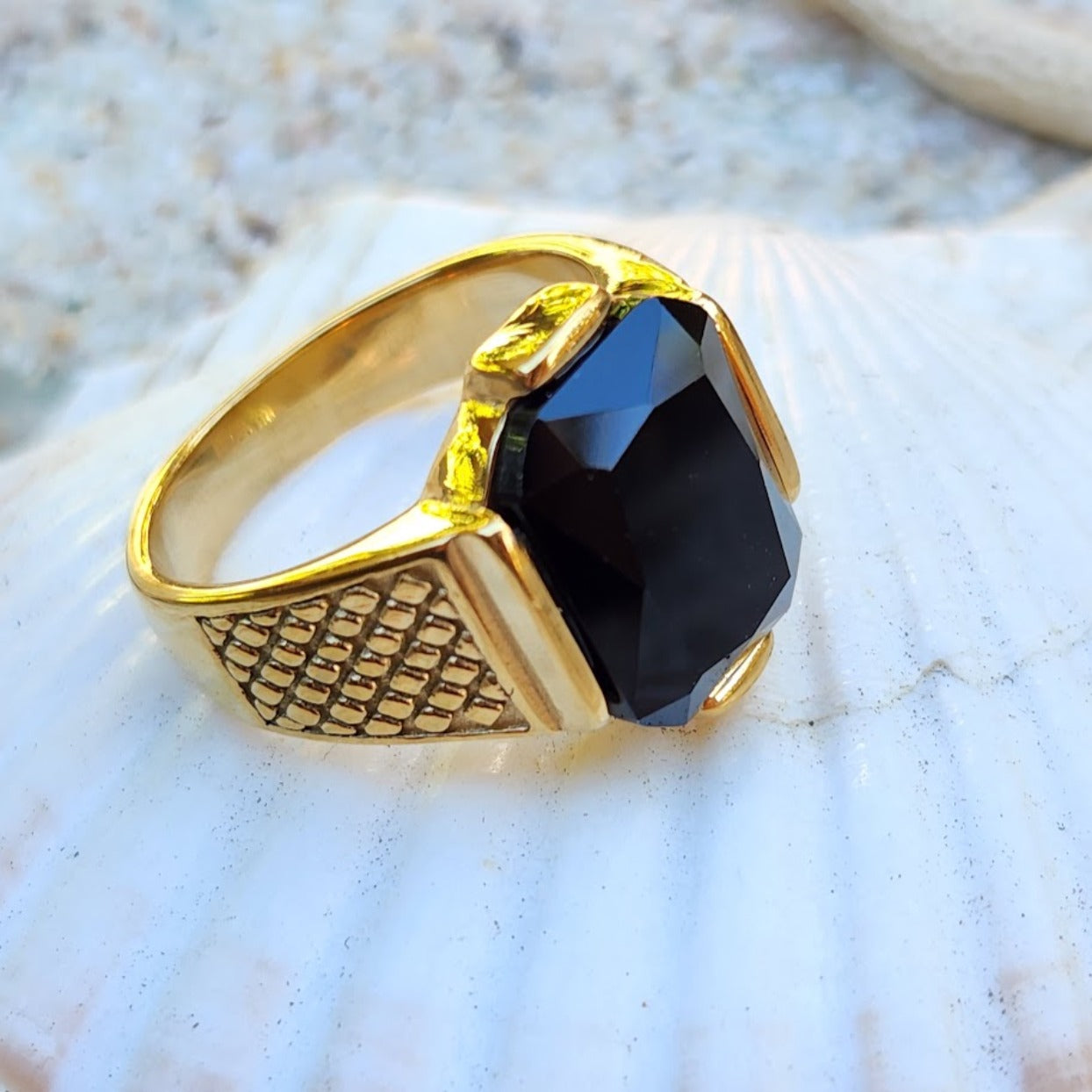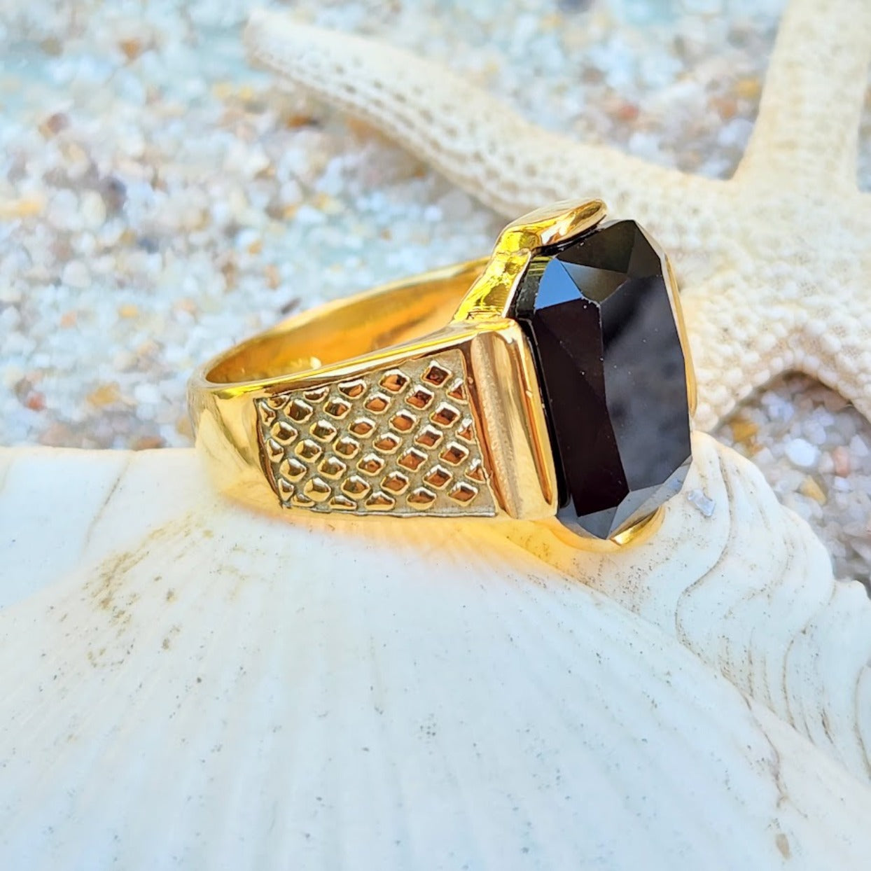 Black Onyx Crystal Weave design 18k Gold Waterproof Men's Ring