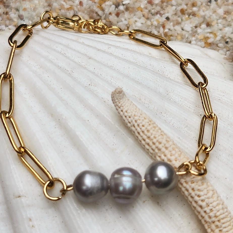 TAHITIAN GREY PEARL WATERPROOF 18K PAPERCLIP BRACELET