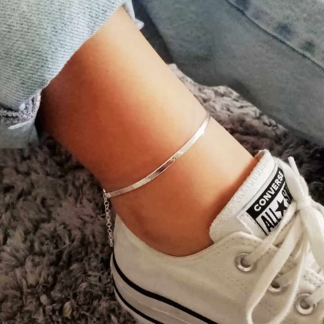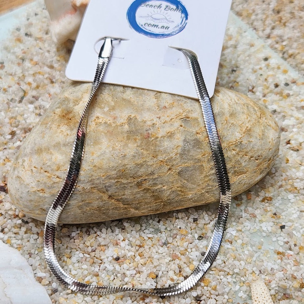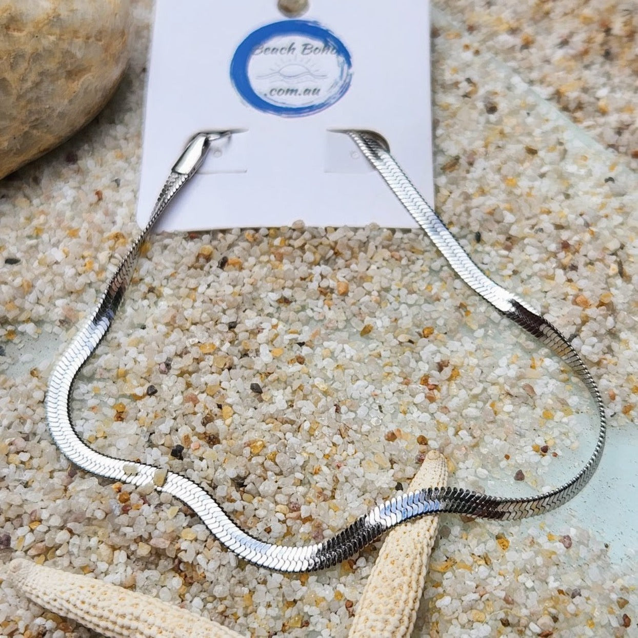 Classic Snake Silver Chain Anklet Silver (Stainless Steel)  / Waterproof / Sweat Proof / Hyper Allergenic / Use at Gym, swimming... yours to enjoy