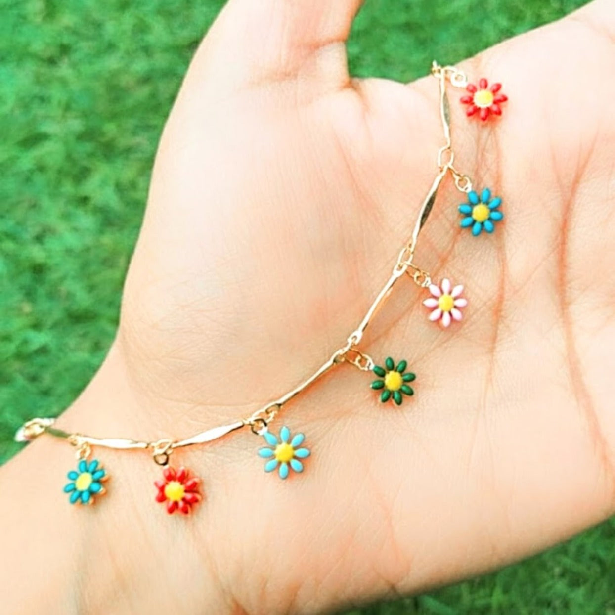 Handmade Daisy Dangle Anklet 18k Gold Plated (Stainless Steel) / Waterproof / Sweat Proof / Hyper Allergenic / Use at Gym, swimming... yours to enjoy all day and all night long