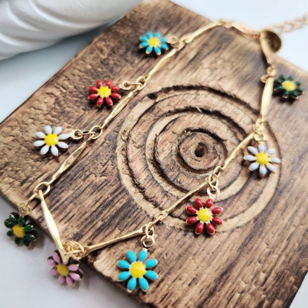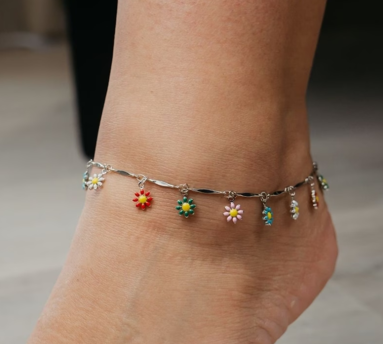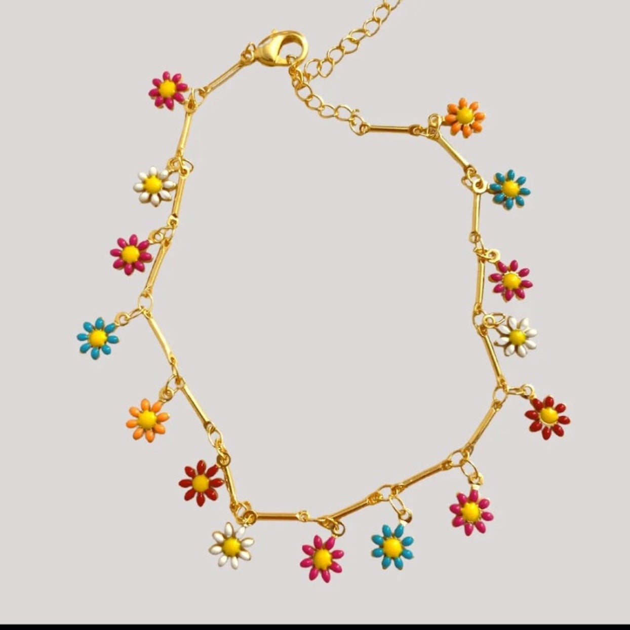 DAISY RAINBOWS 18K GOLD OR SILVER WATERPROOF ANKLET