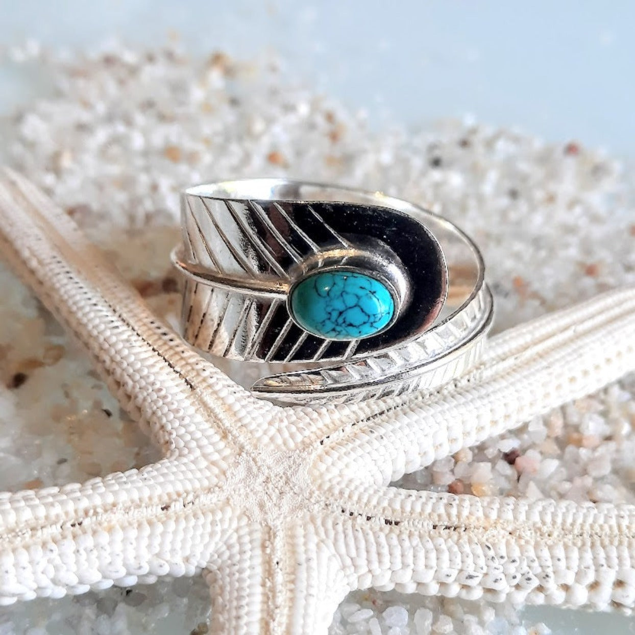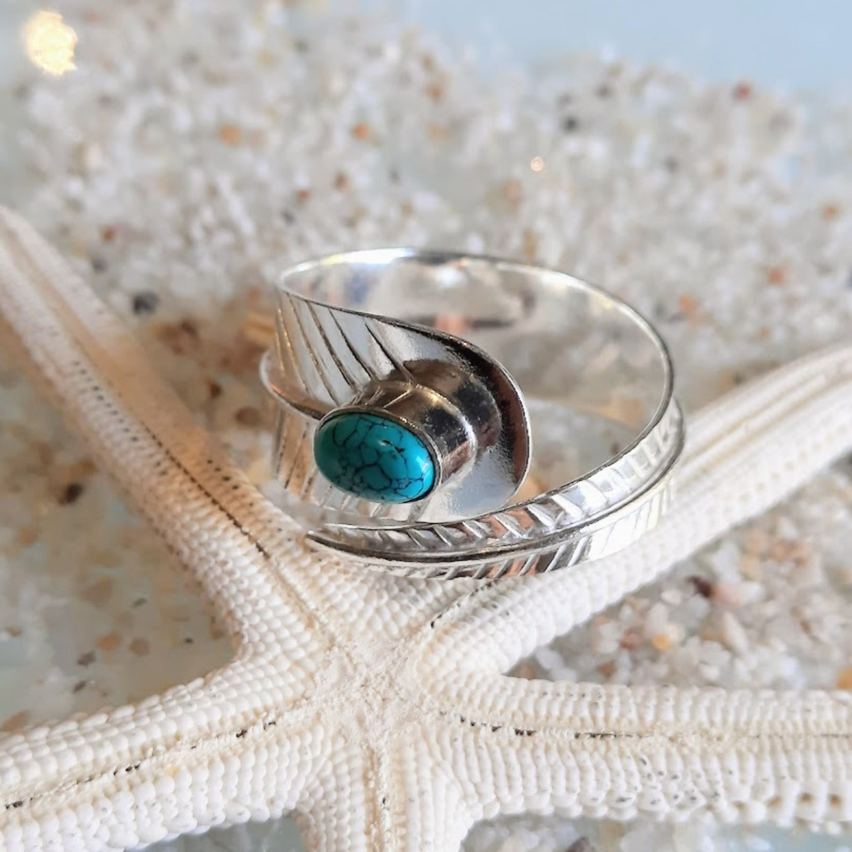 TURQUOISE LEAF - 925 ADJUSTABLE TURQUOISE RING