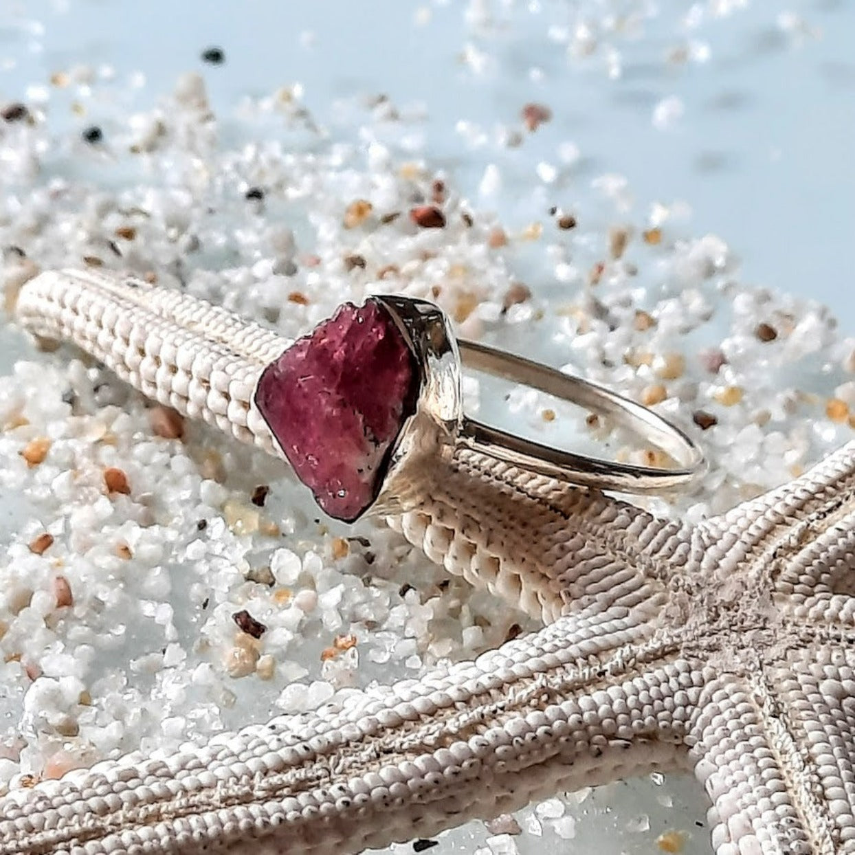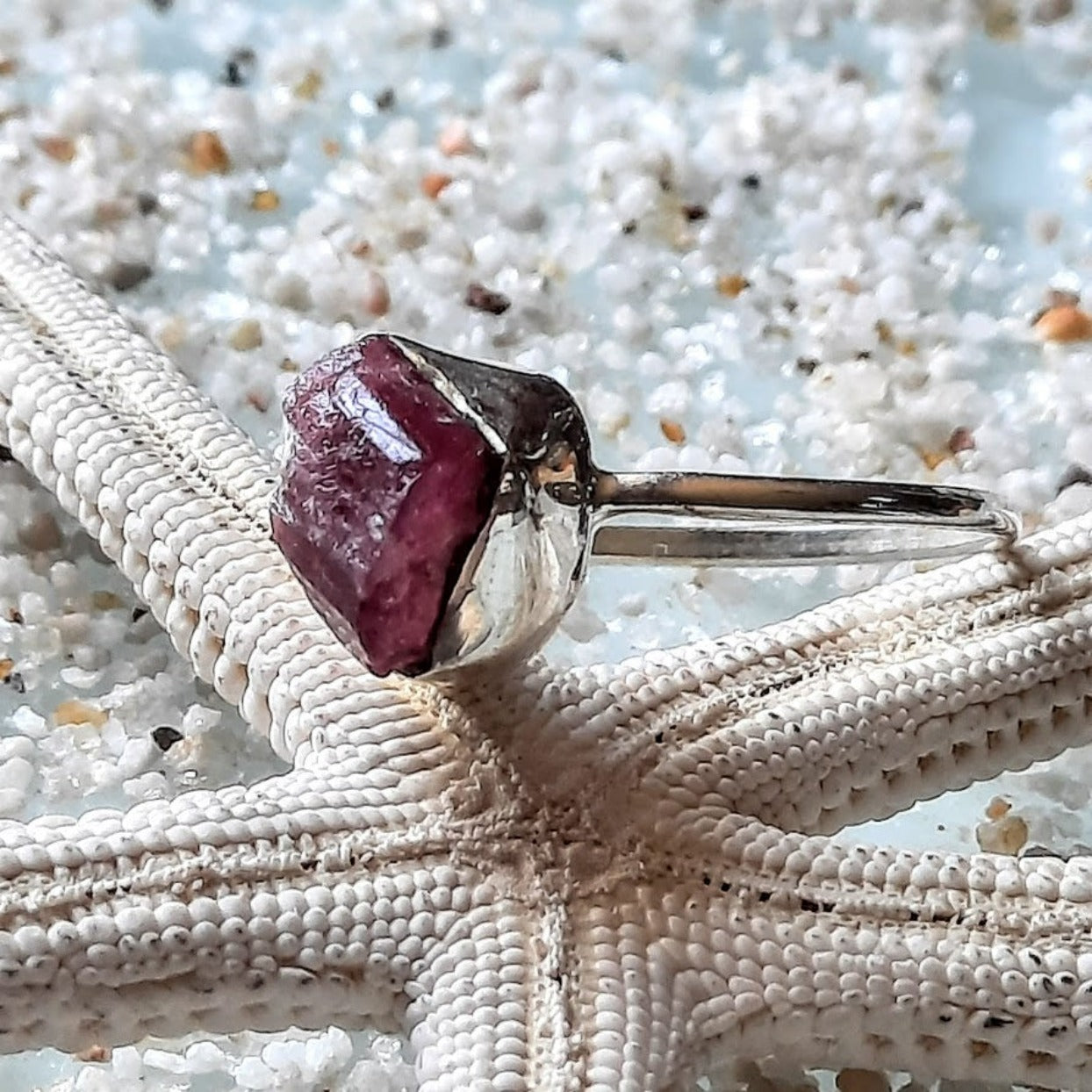 Delicate 925 silver Rings / Each Ring made from Natural Raw Rubies (each piece individual)