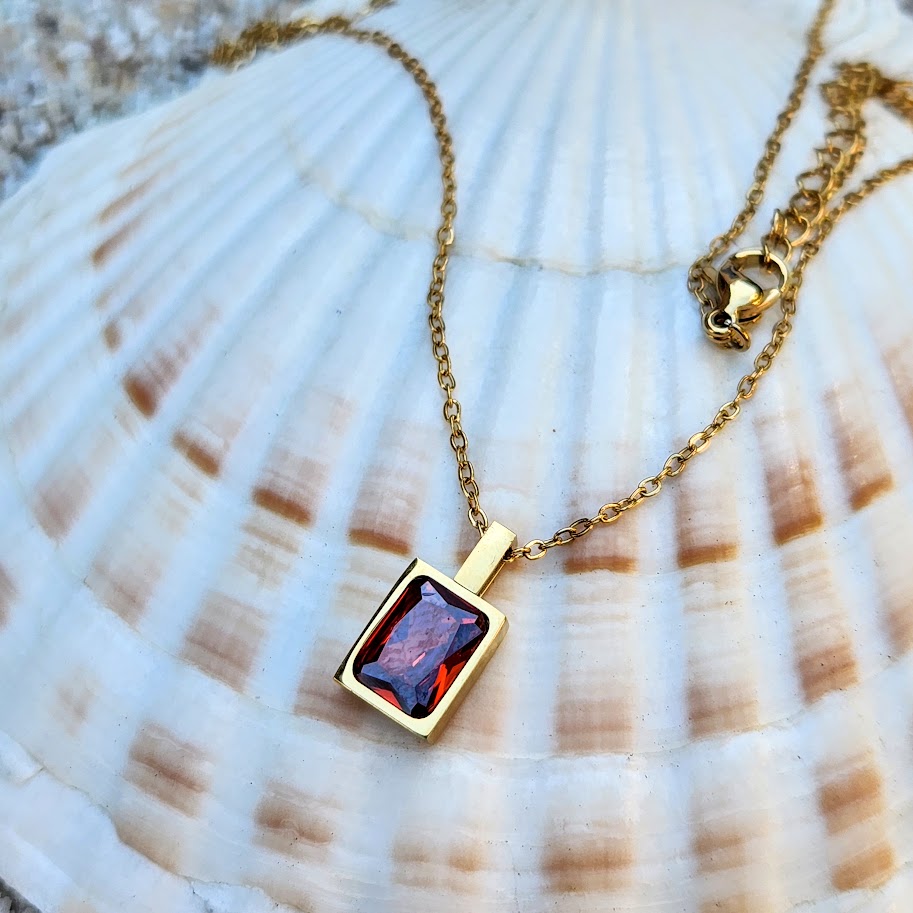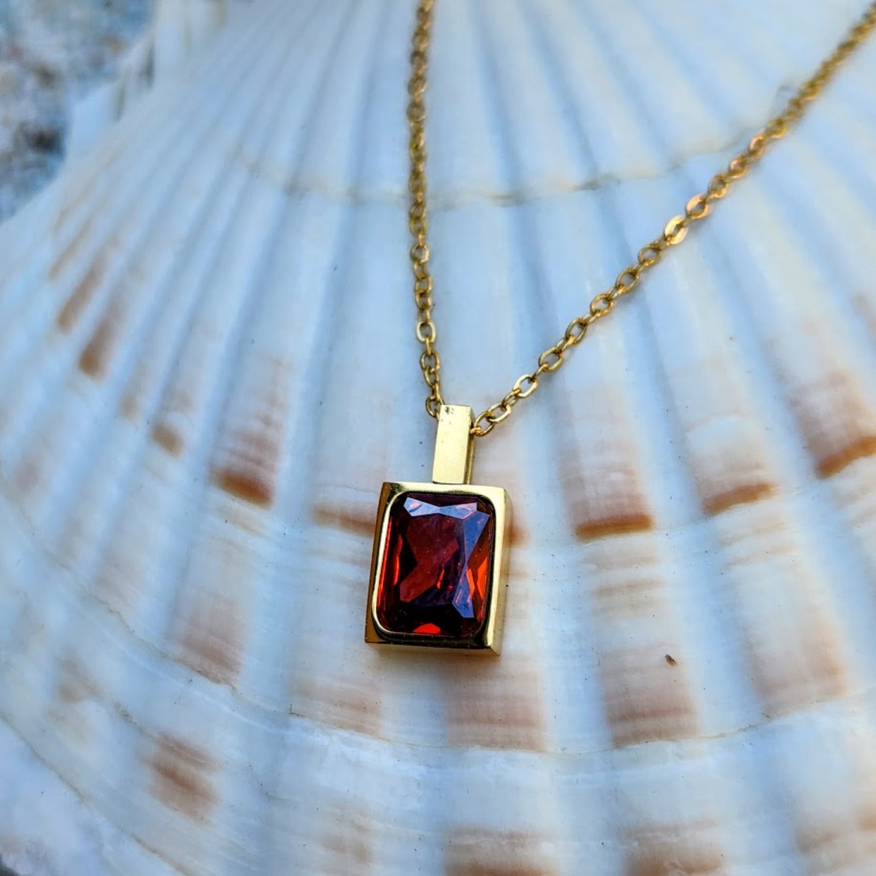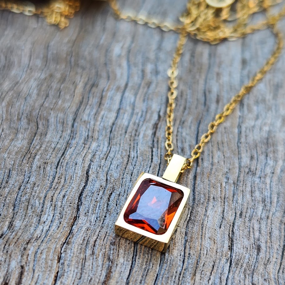 GARNET CUBIC ZIRCONIA PENDANT 18K GOLD- WATERPROOF NECKLACE