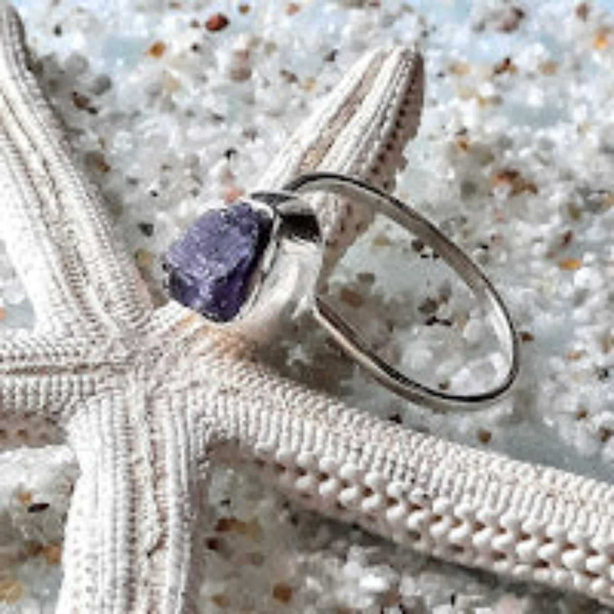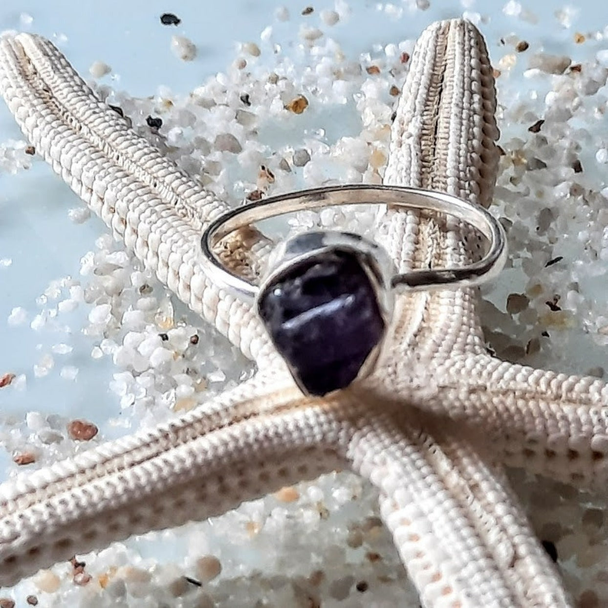 Delicate 925 silver Rings / Each Ring made from Natural Raw Amethyst (each piece individual)