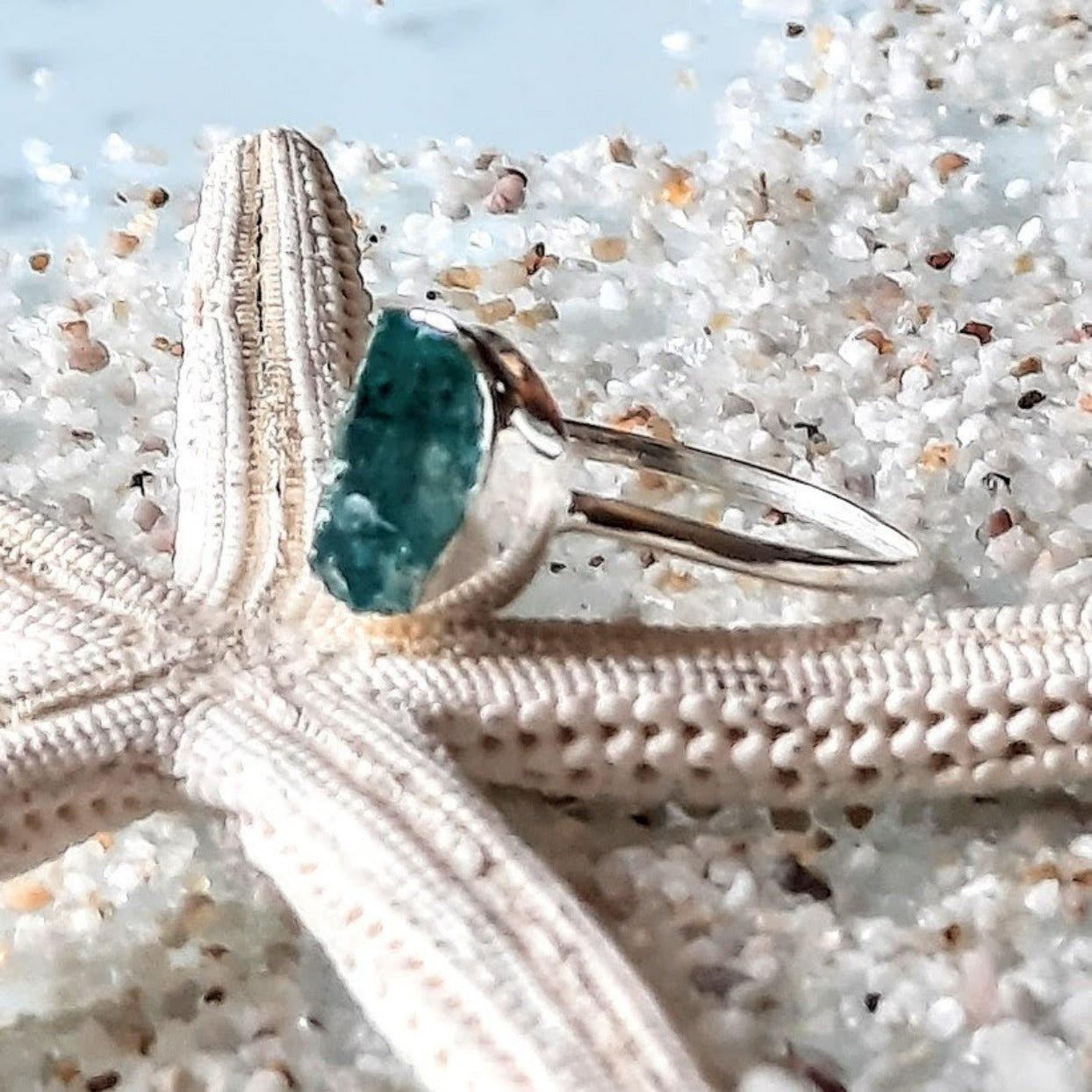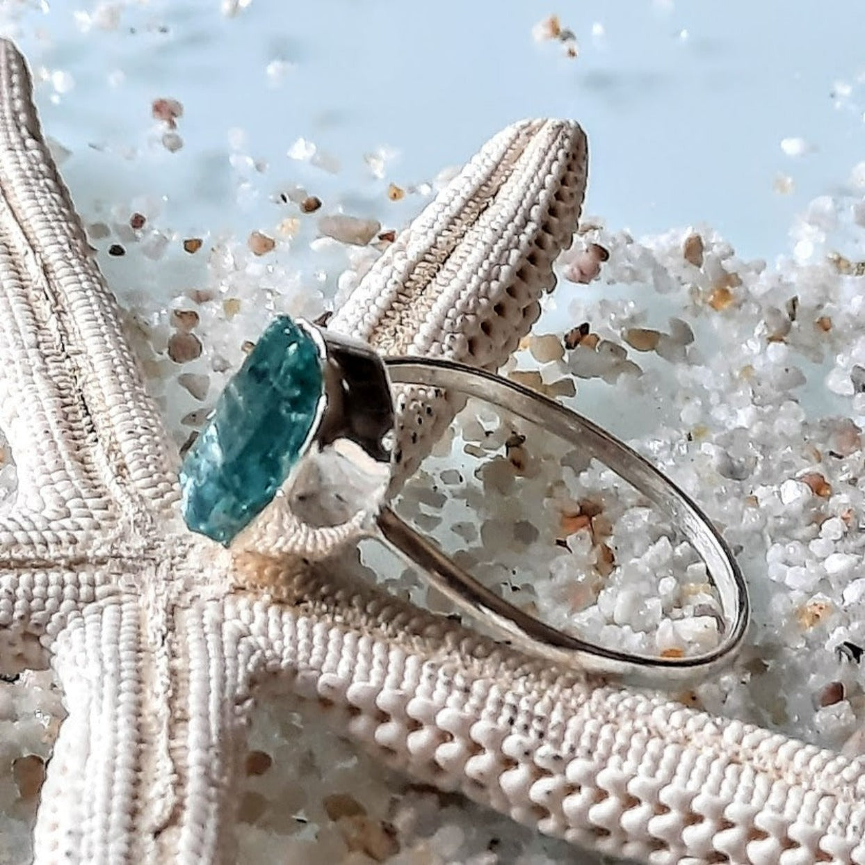 Delicate 925 silver Rings / Each Ring made from Natural Raw Apatite (each piece individual)