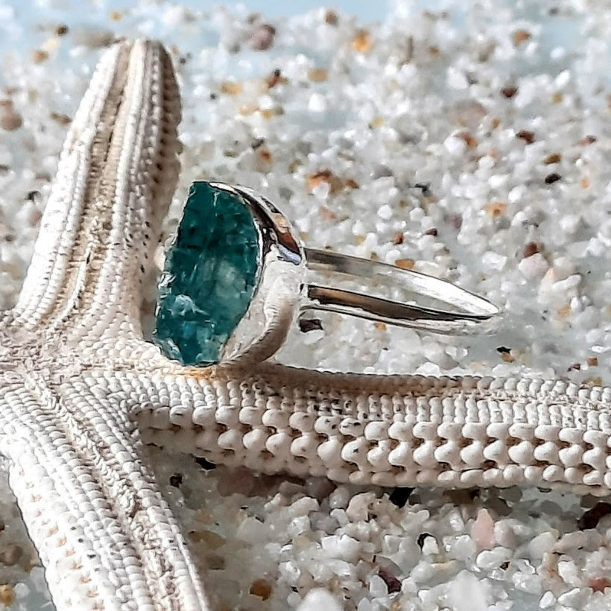 Raw Apatite Handmade Delicate 925 Sterling Silver Ring