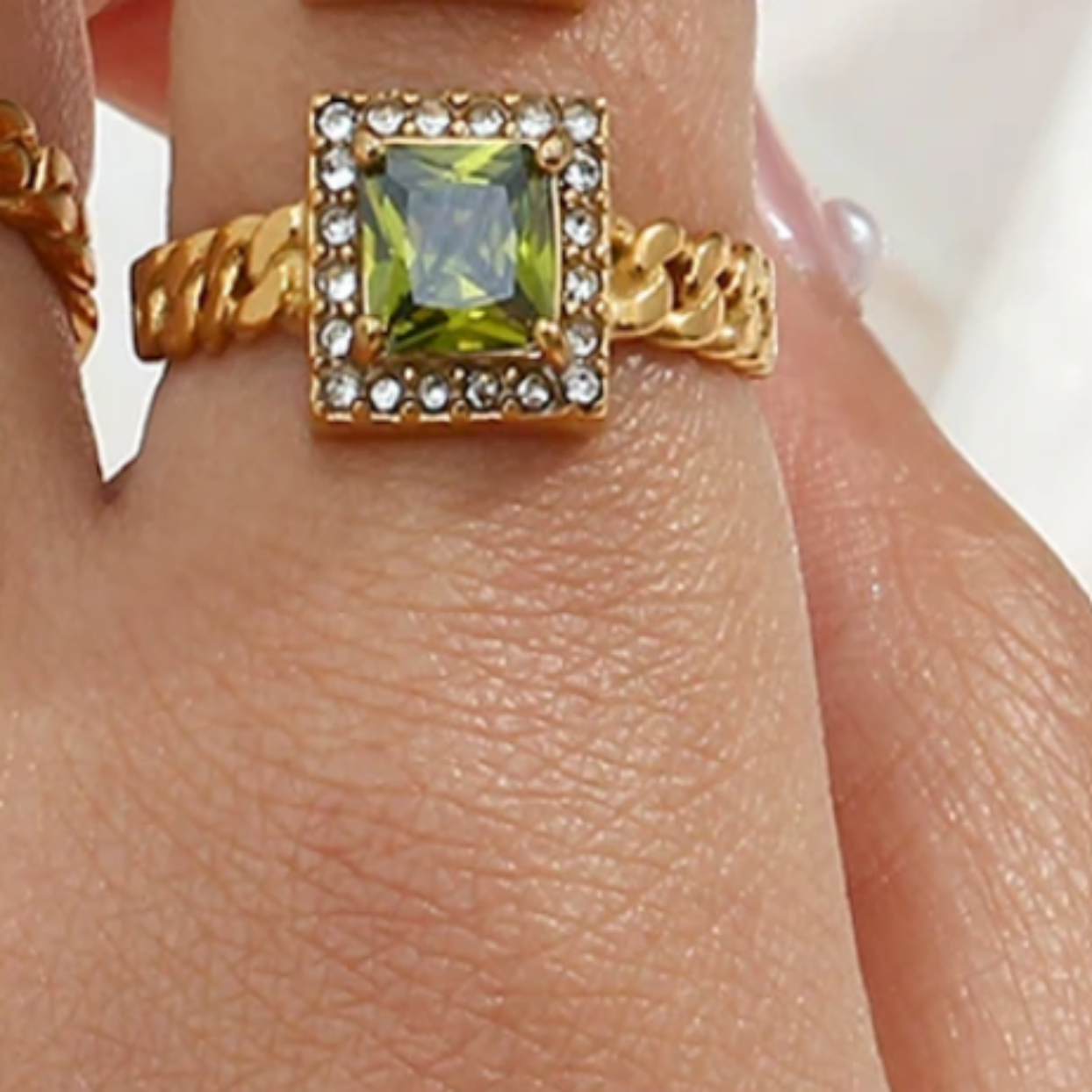 PERIDOT SPARKLES - ADJUSTABLE WATERPROOF GOLD RING