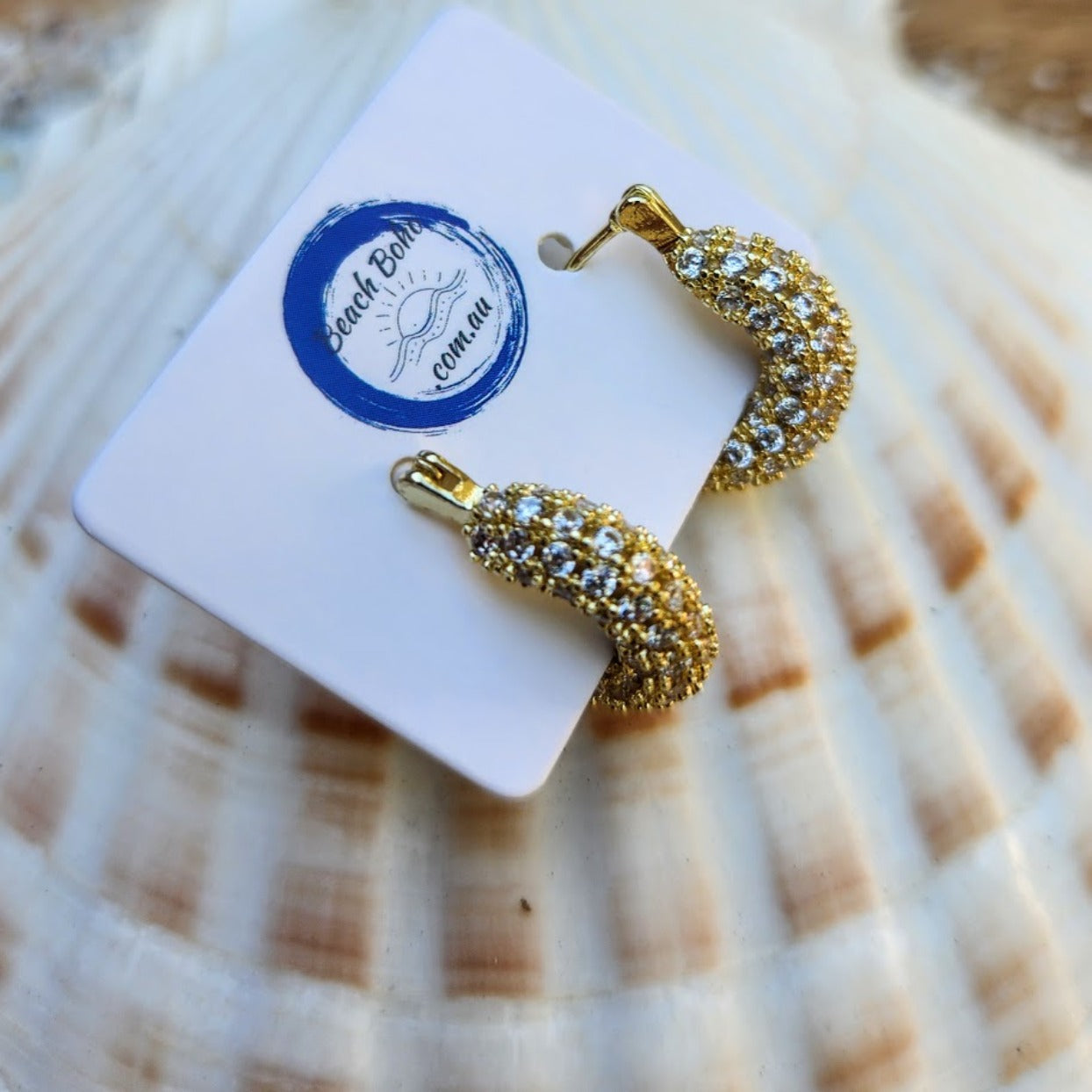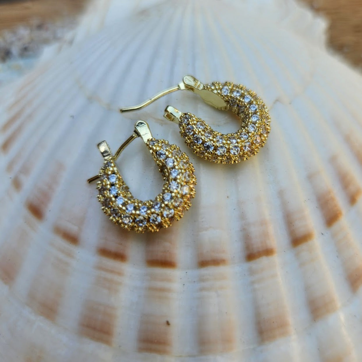 14k Gold Plated Cubic Zirconia small Huggie Hoop Earrings