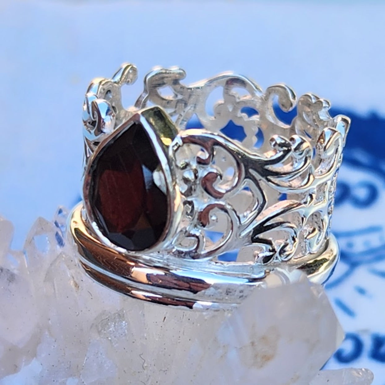 Stunning Teardrop Garnet Stone Setting in an Integrate Silver Design