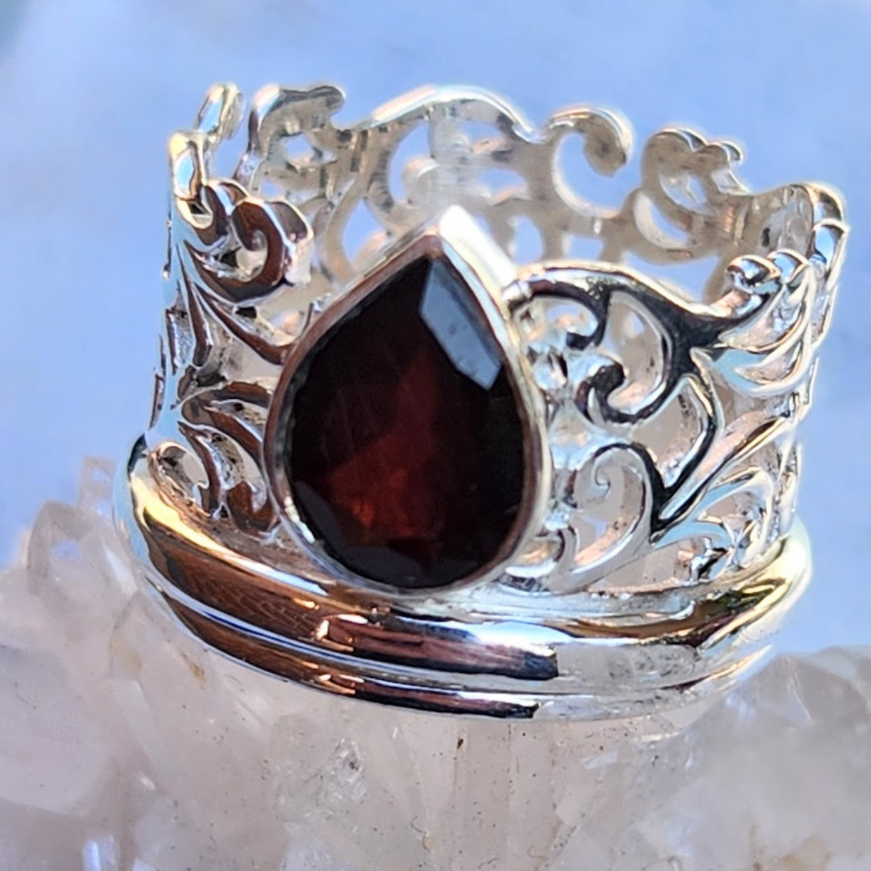 SO RED - GARNET STERLING SILVER SPINNER RING