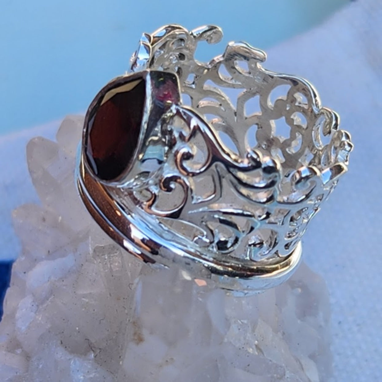 Handcrafted and Designed this Garnet 925 Silver Spinner Ring