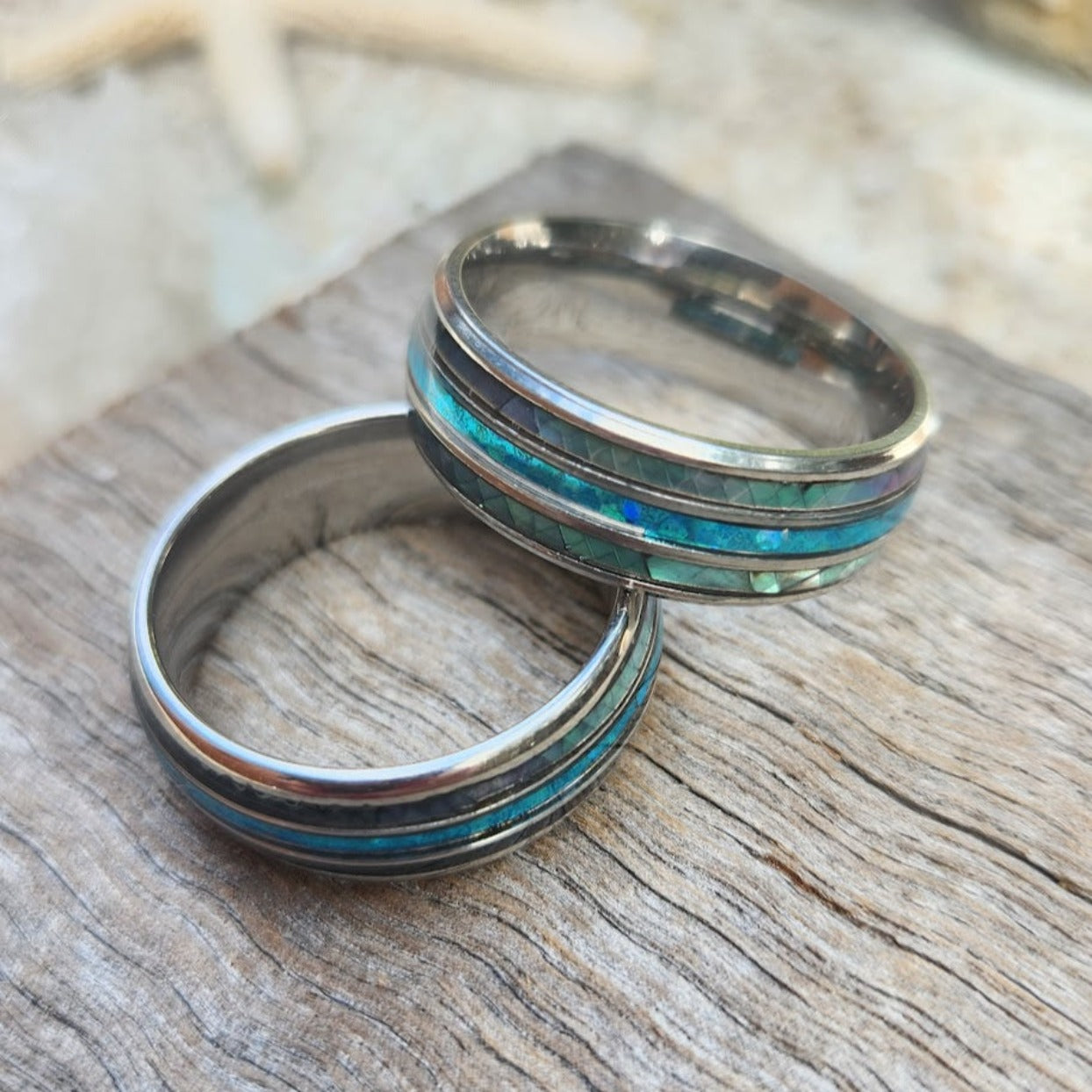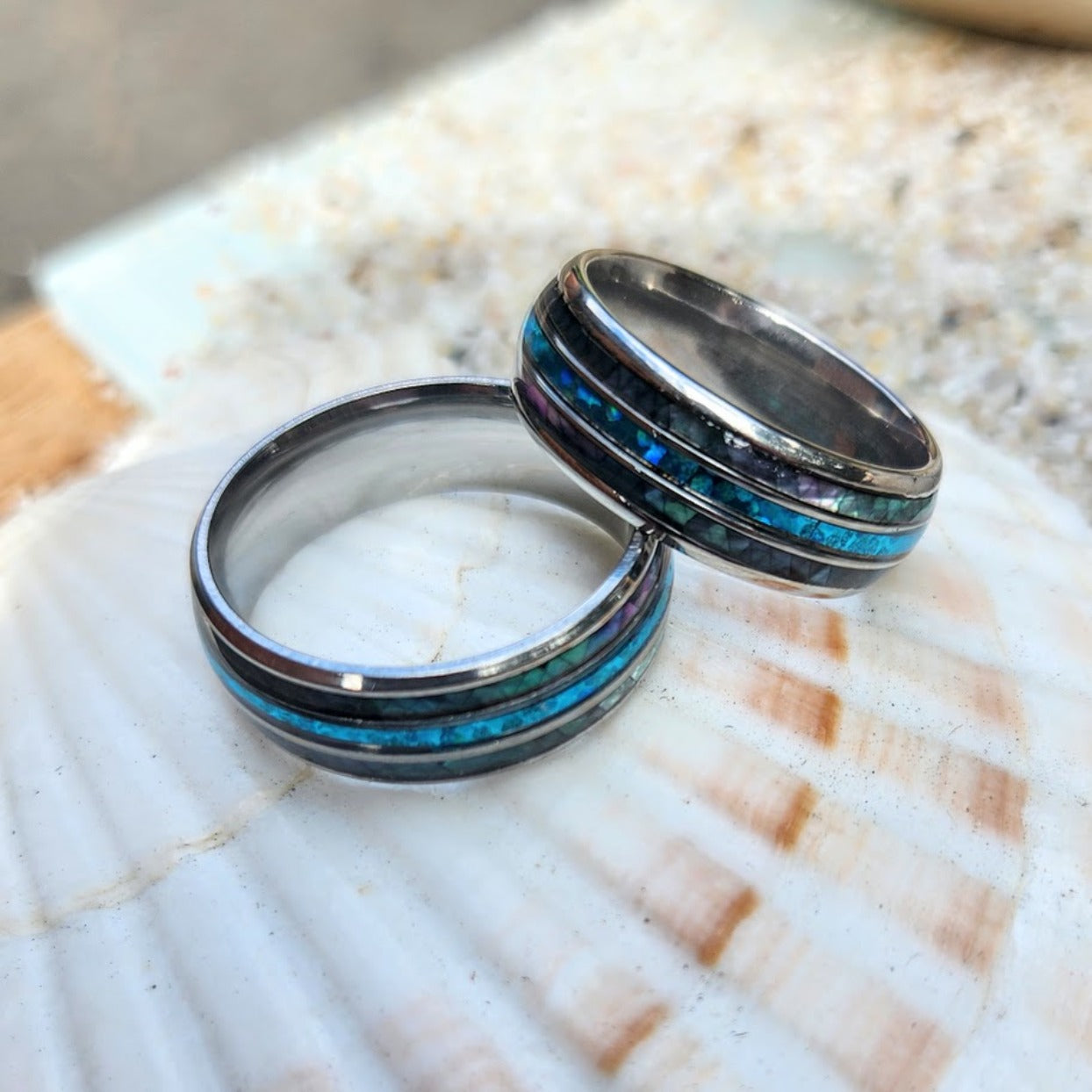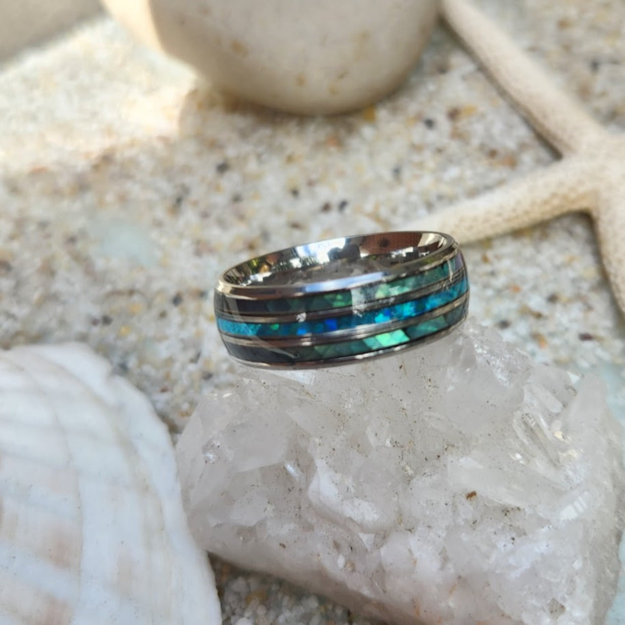 SHELL BLUE - PAUA SHELL SILVER WATERPROOF MEN'S RING