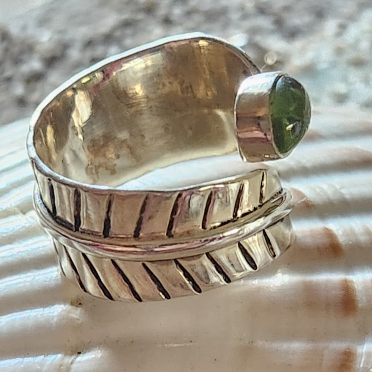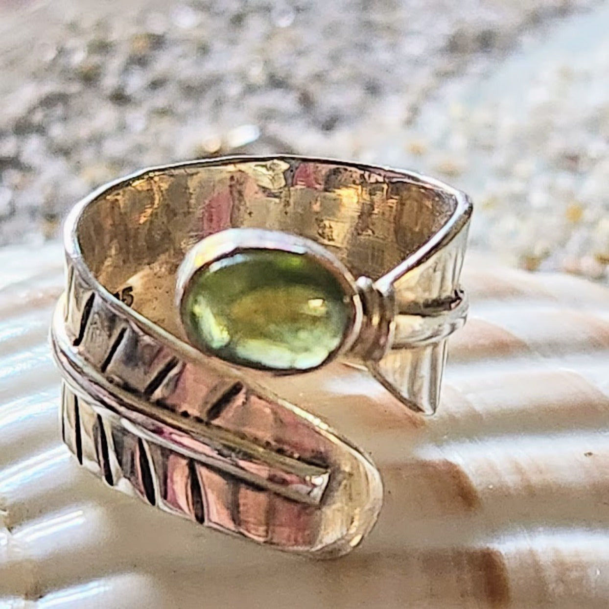 Adjustable 925 Sterling Silver with Stunning Peridot Adjustable from size 5 to size 10, soft beautiful 925 Silver, wear on your thumb or any finger of your choice