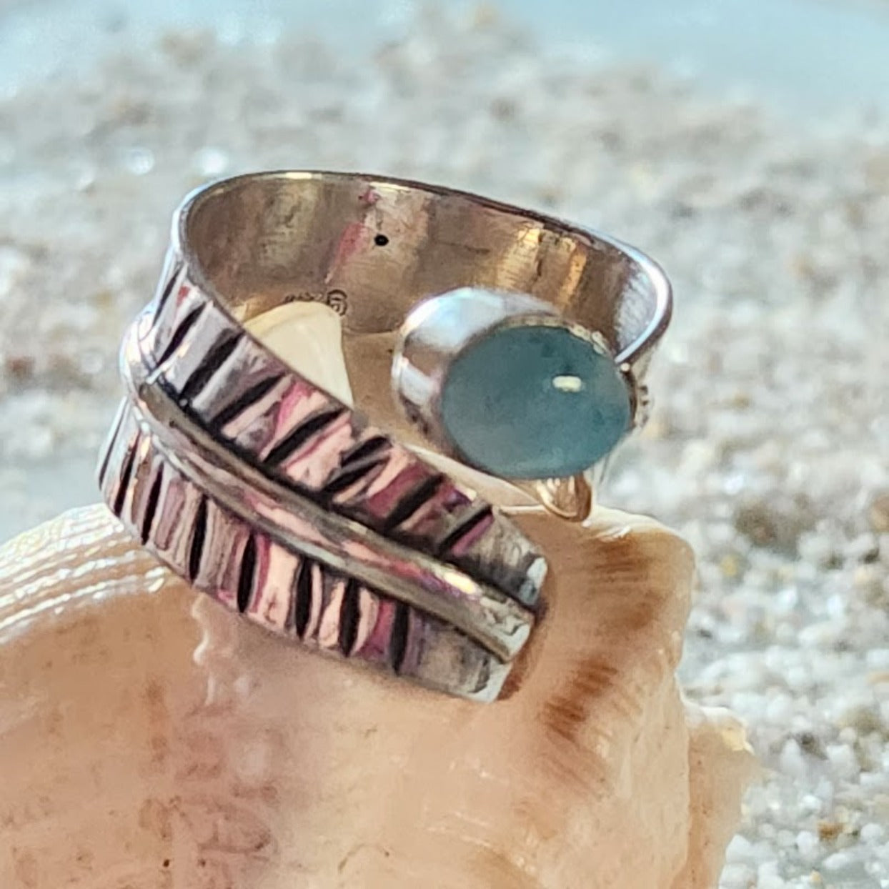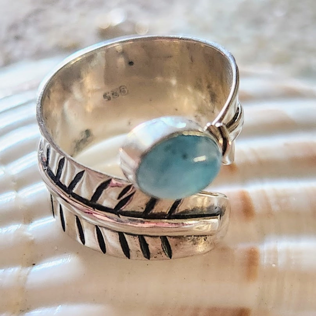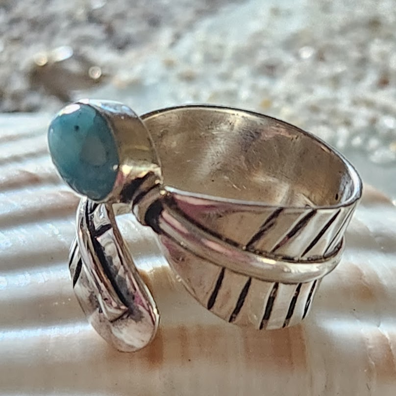 SILVER LEAVES - LARIMAR / ADJUSTABLE RING