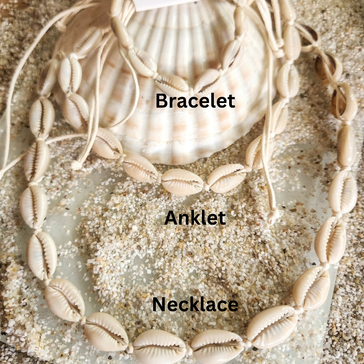 NATURAL COWRIE BOHO SHELL SET - ANKLET / NECKLACE & BRACELET (SET OF 3)