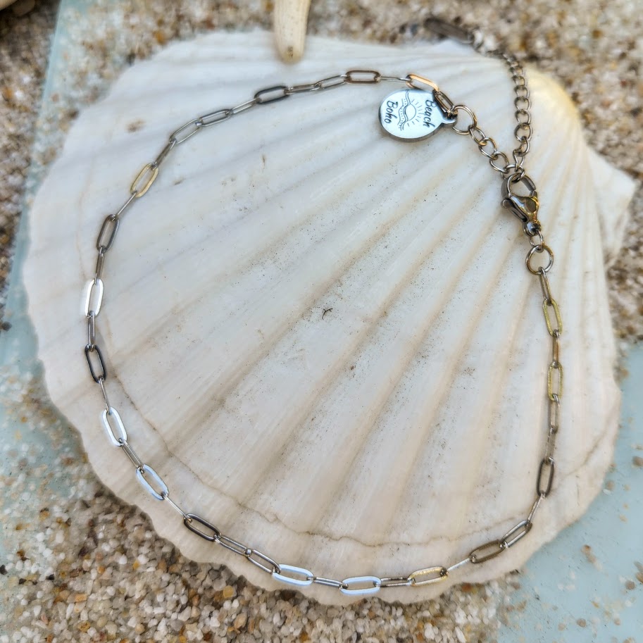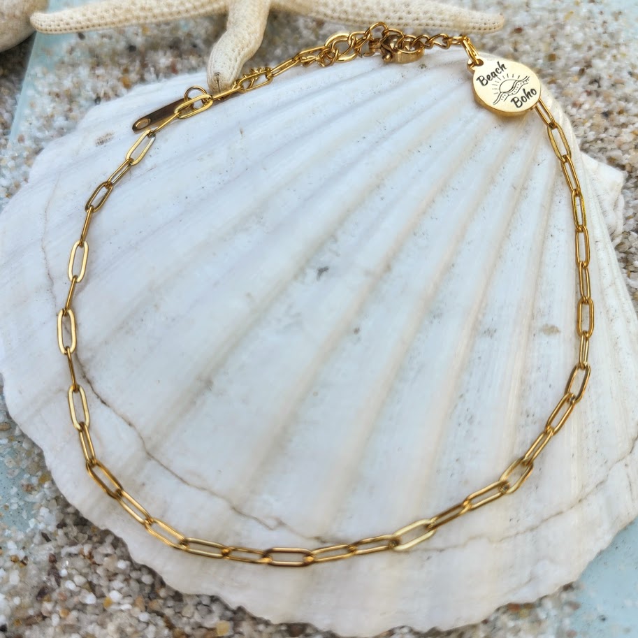 PAPERCLIP SILVER OR GOLD - WATERPROOF BEACH BOHO ANKLET