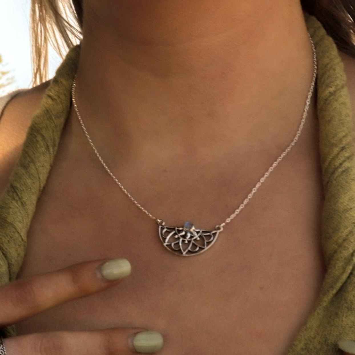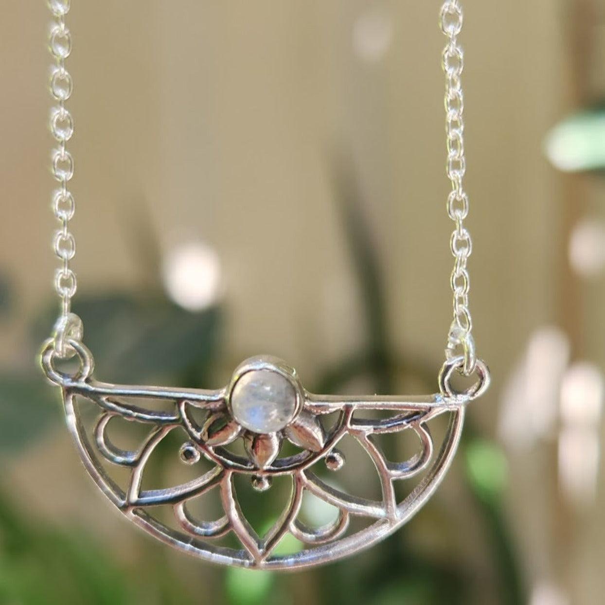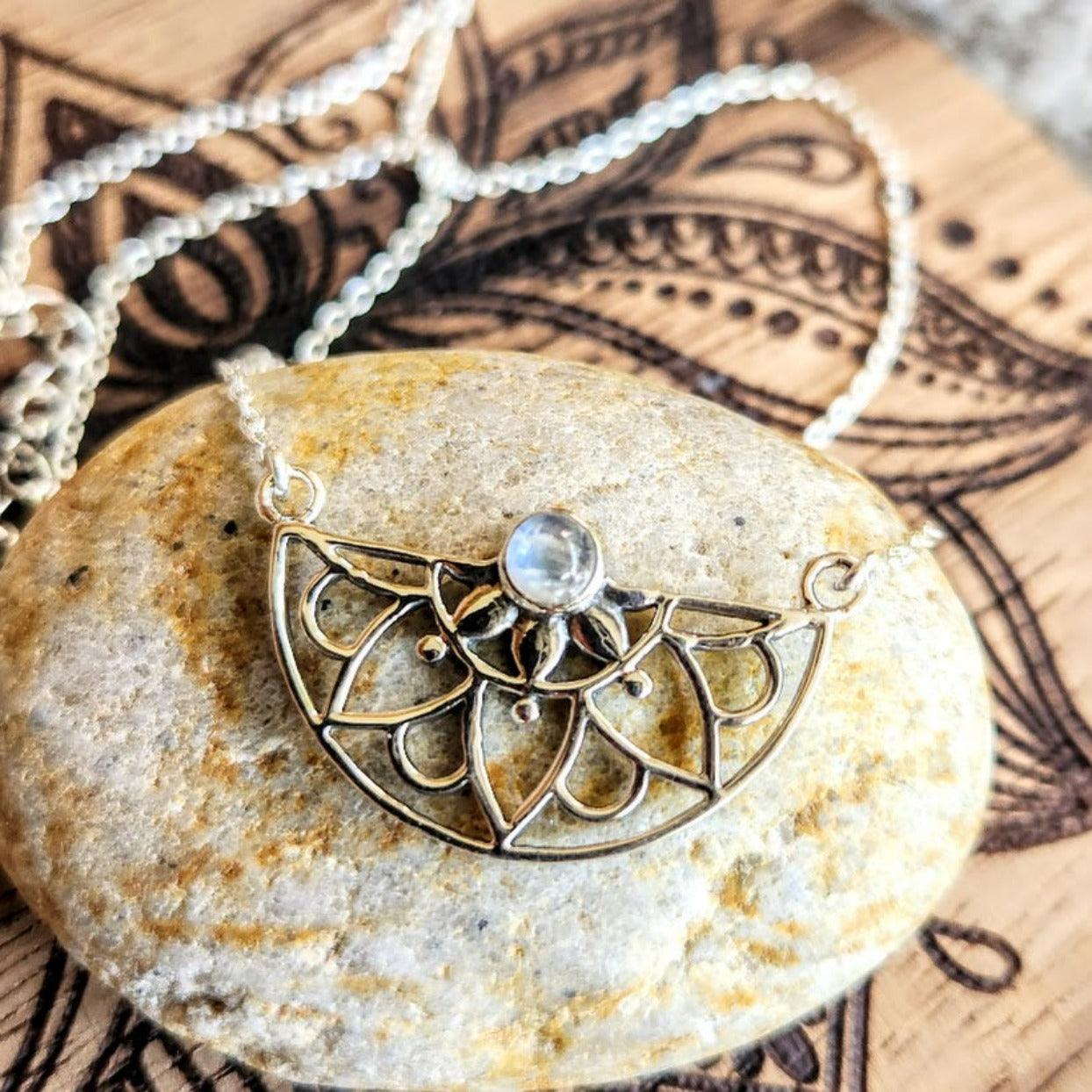 Wonderfully designed handmade Single Moonstone Crescent Moonstone 925 Sterling Silver Necklace / polish regularly (comes with a Silver Cleaning Cloth)