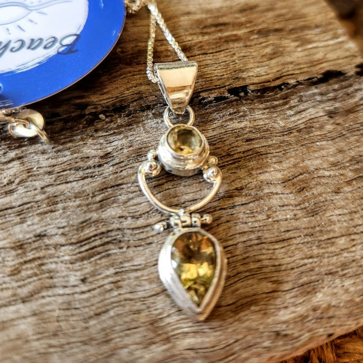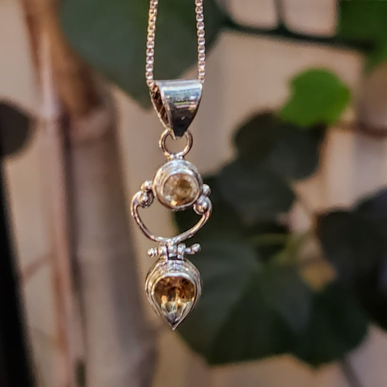 Double Citrine 925 Sterling Silver Pendant Necklace