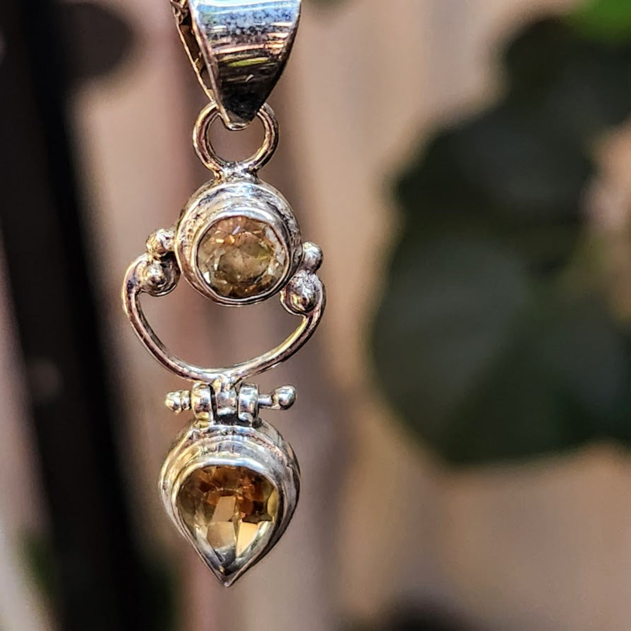 Two Citrine Crystals with beautiful Silver Setting