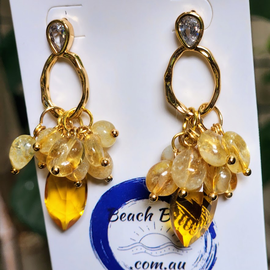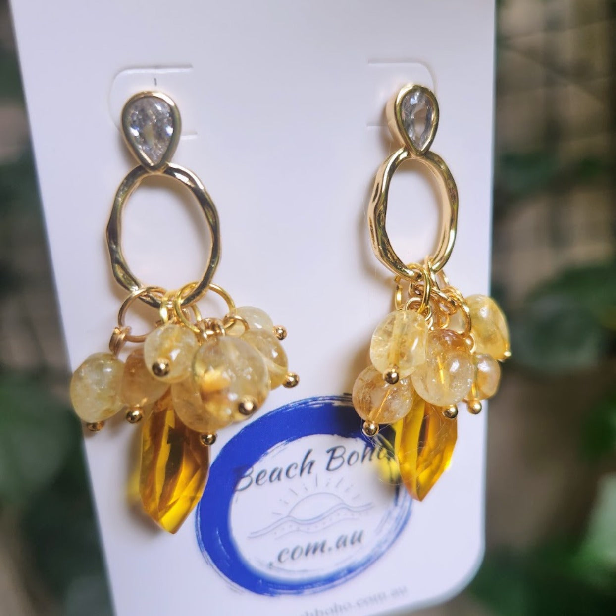 Pure High grade Polished Citrine Gold Plated Stud Dangle Boho Earrings Made with the highest grade Citrine and Citrine beads / Cubic Zirconia / Gold retention wire