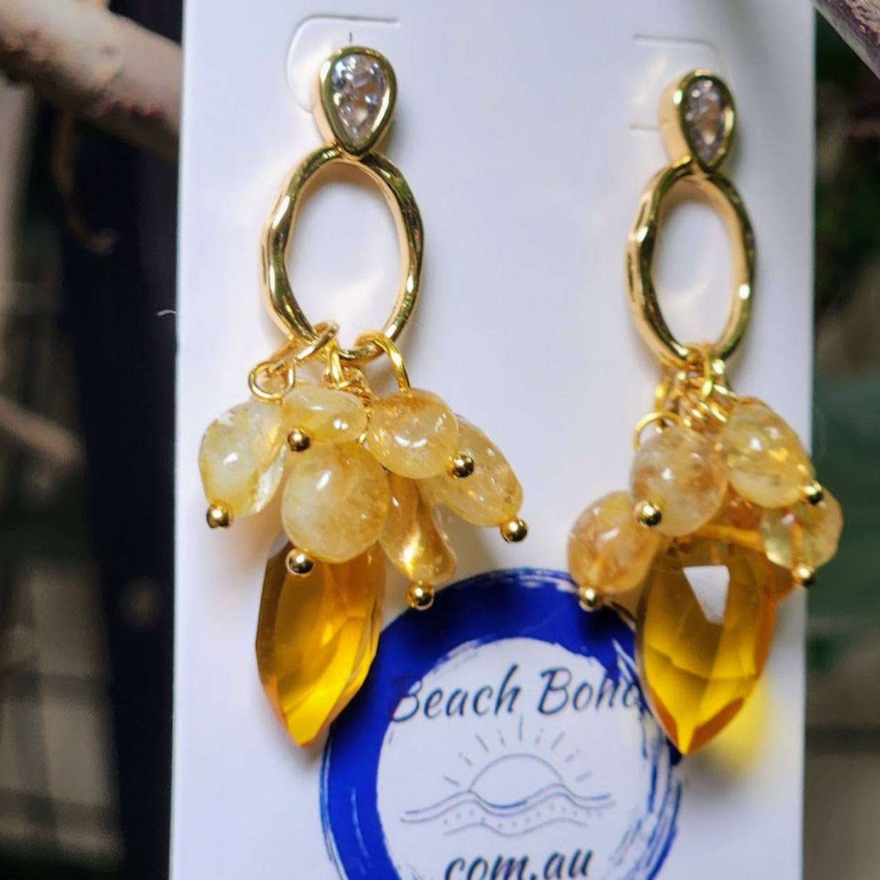 SUN DROPS - CITRINE POLISHED STONE & CITRINE BEADED STUD EARRINGS