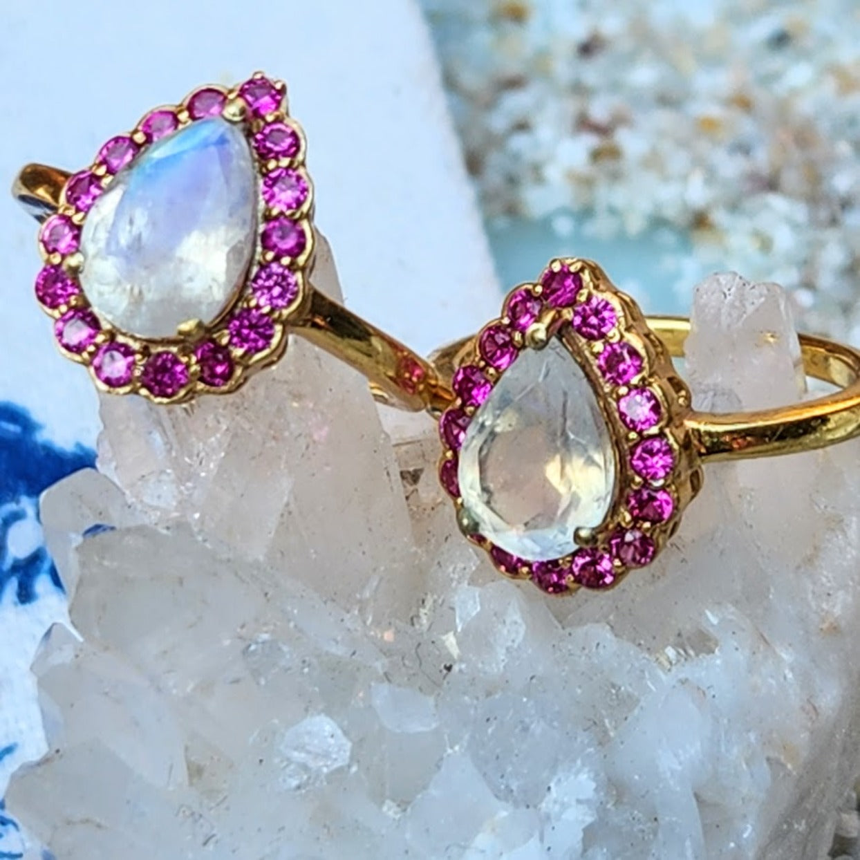 Teardrop Moonstone Pink Tourmaline Crystals