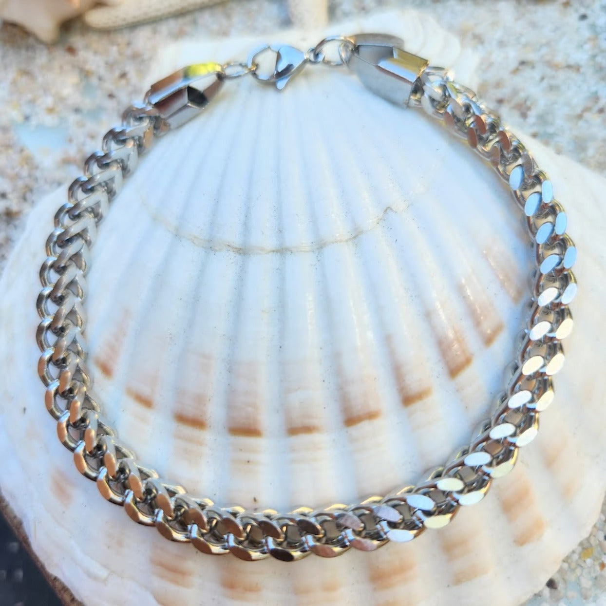 MEN'S SILVER DOUBLE CURB WATERPROOF BRACELET
