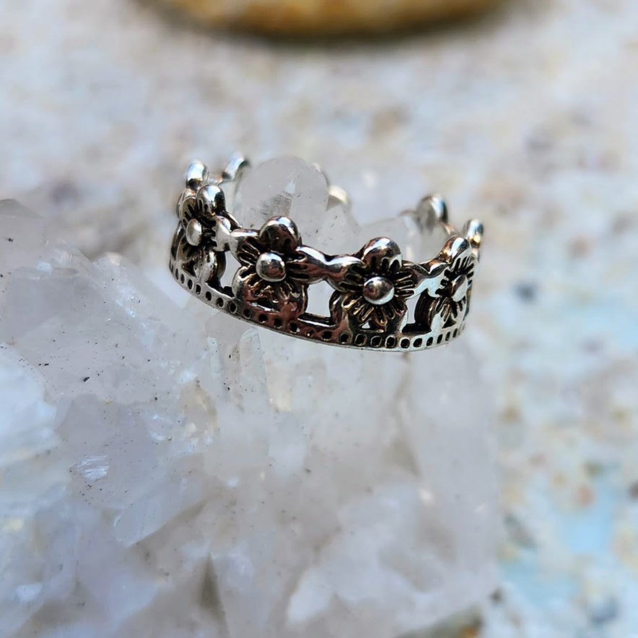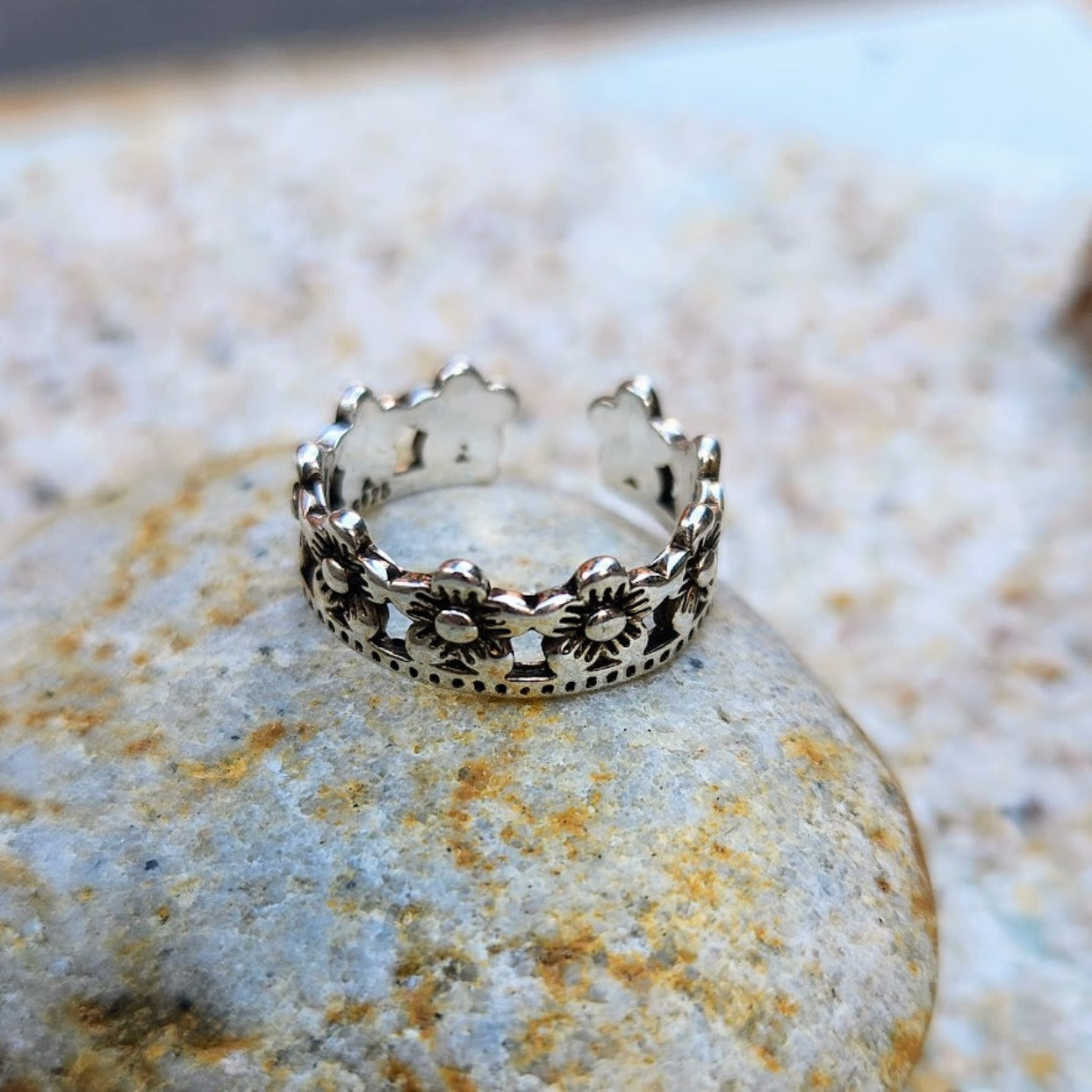 Crown of Daisy Flowers Toe Ring 925 Sterling Silver Adjustable to approx. Size 6