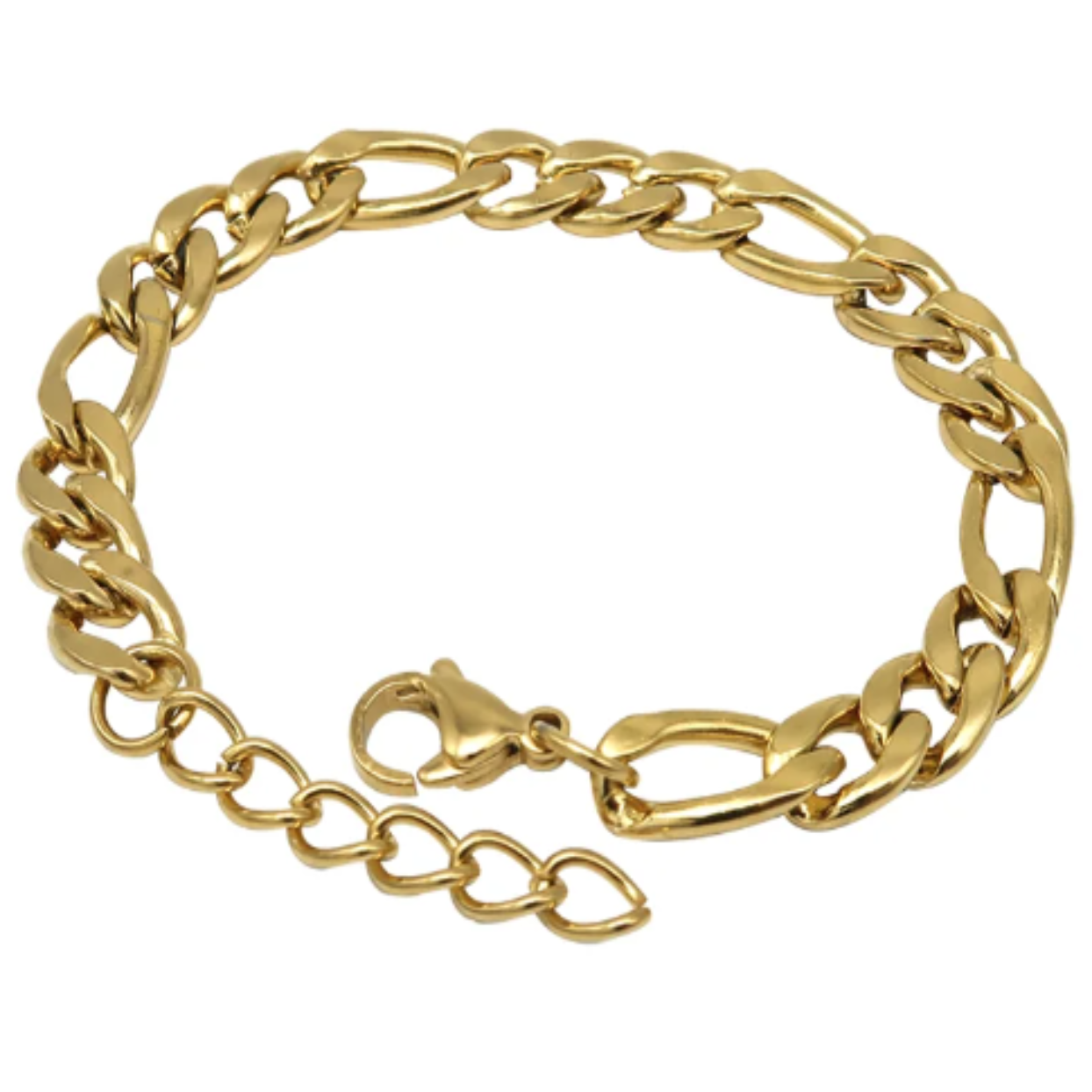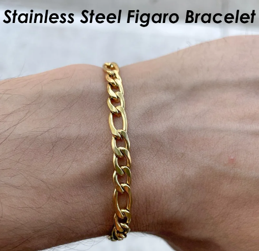 18k Gold Stainless Steel Figaro Men's Link Chain Bracelet