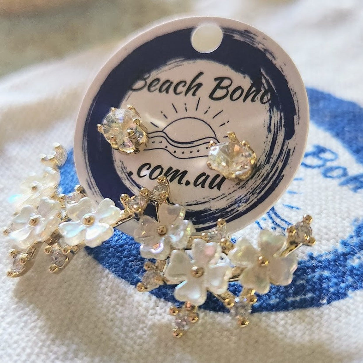 MOTHER OF PEARL DAISY CZ STUDS EARRINGS