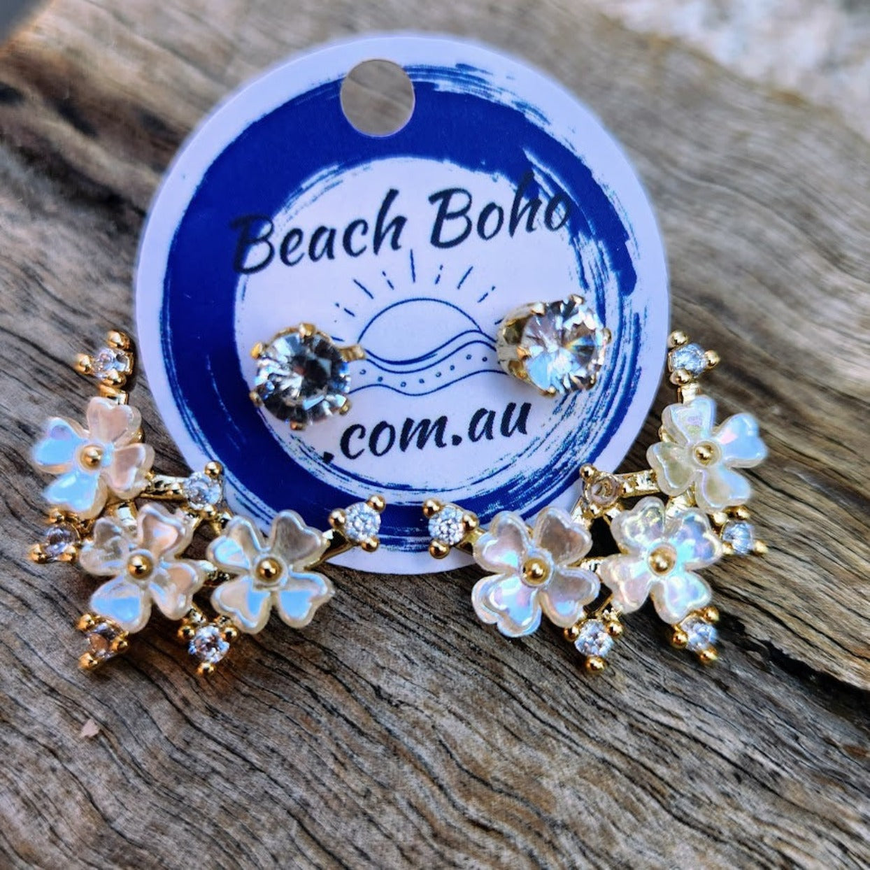 Mother of Pearl & Cubic Zirconia Back stud earrings
