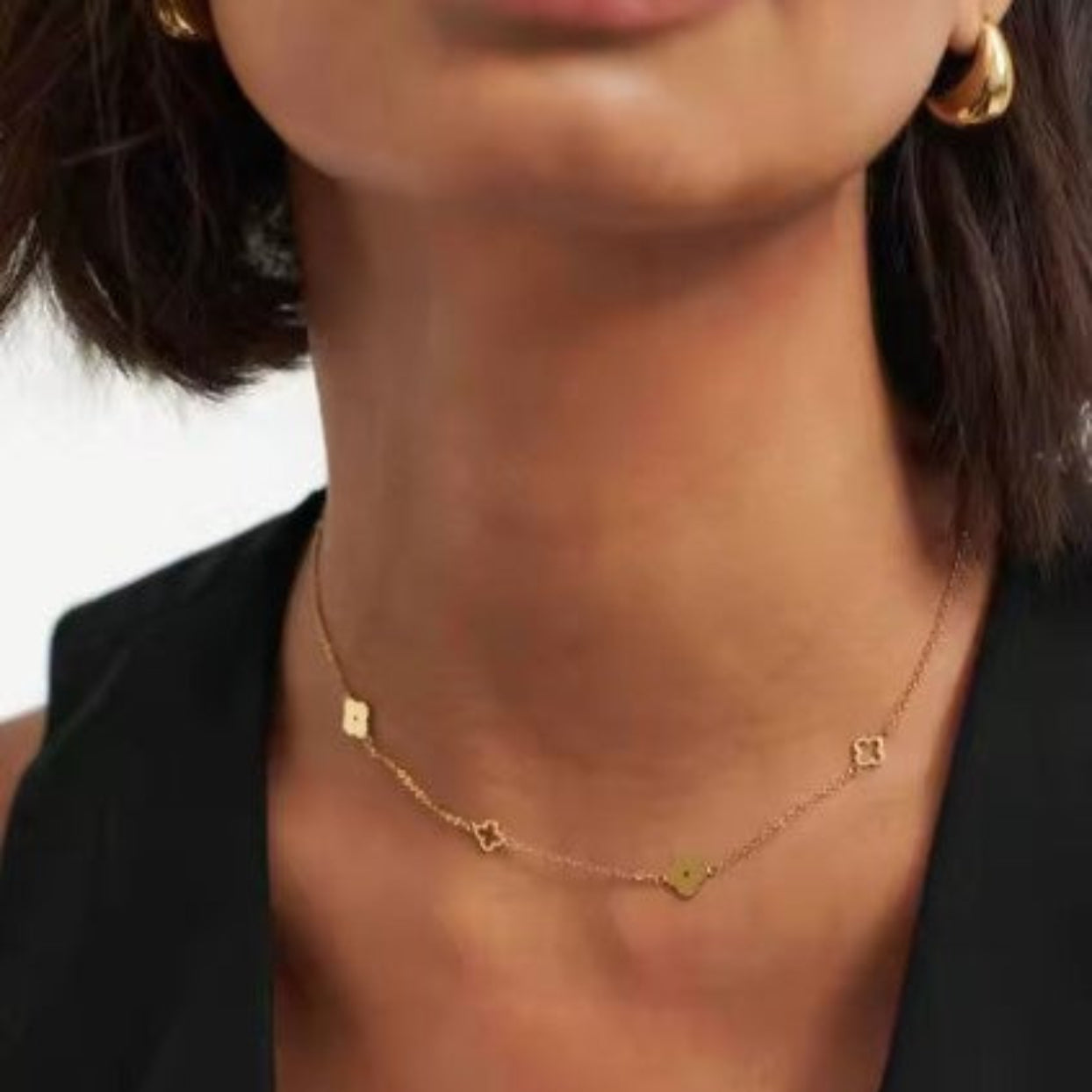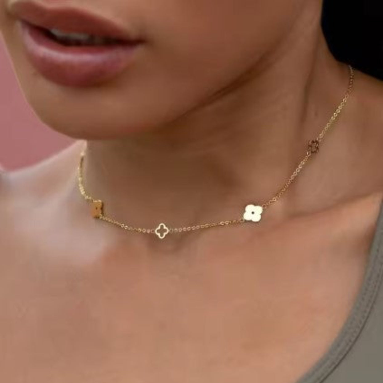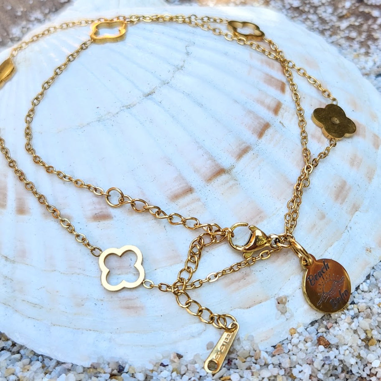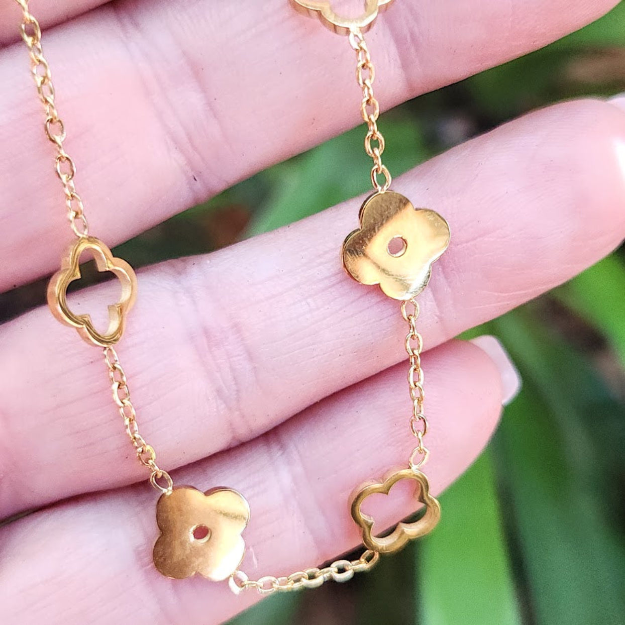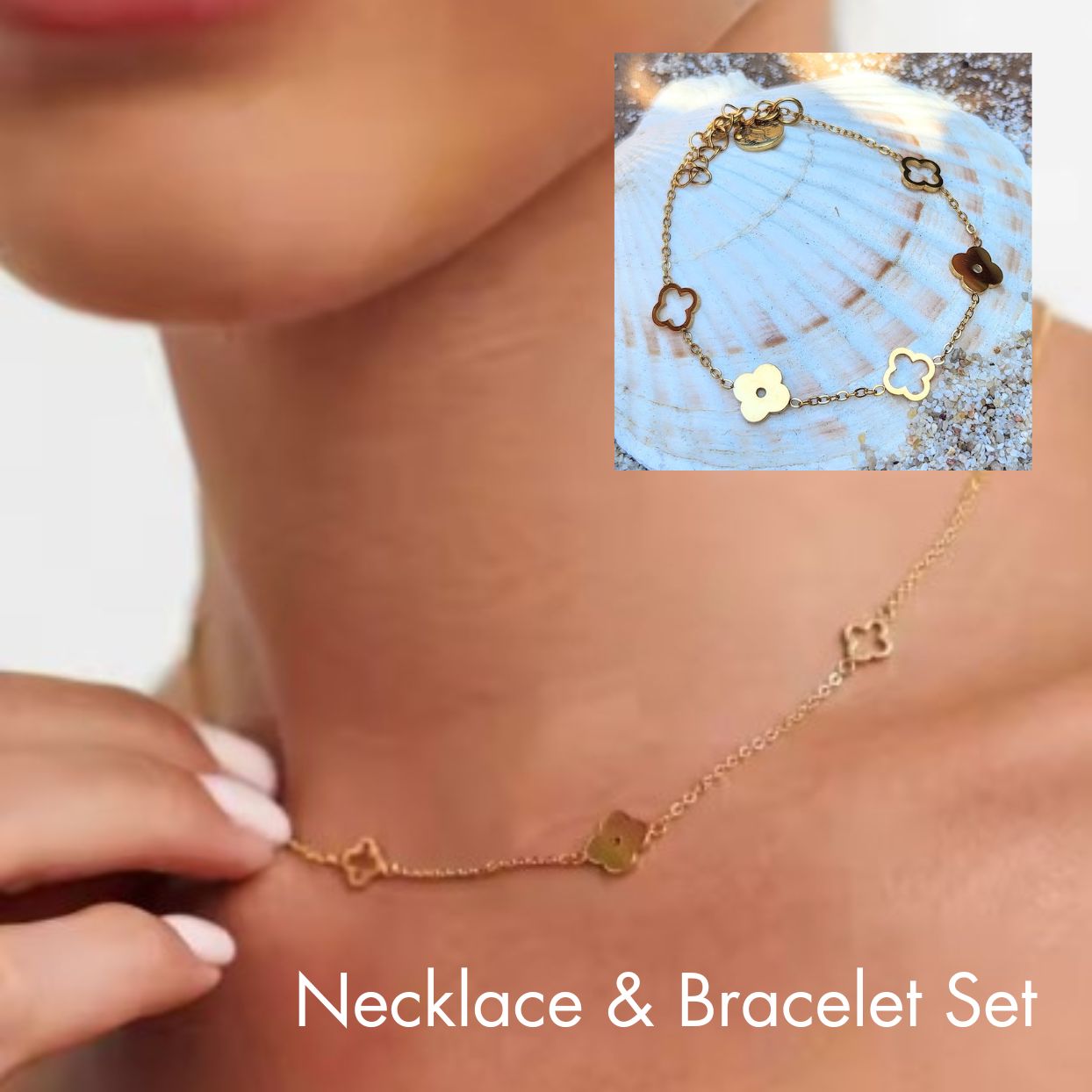 FOUR LEAF CLOVER - WATERPROOF 18K GOLD CLOVER PENDANT BRACELET & NECKLACE SET